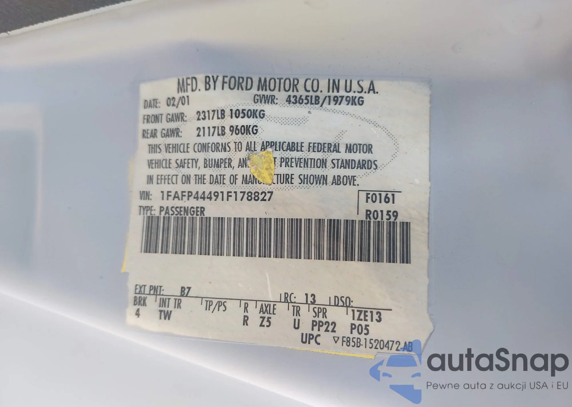 VIN: 1FAFP44491F178827