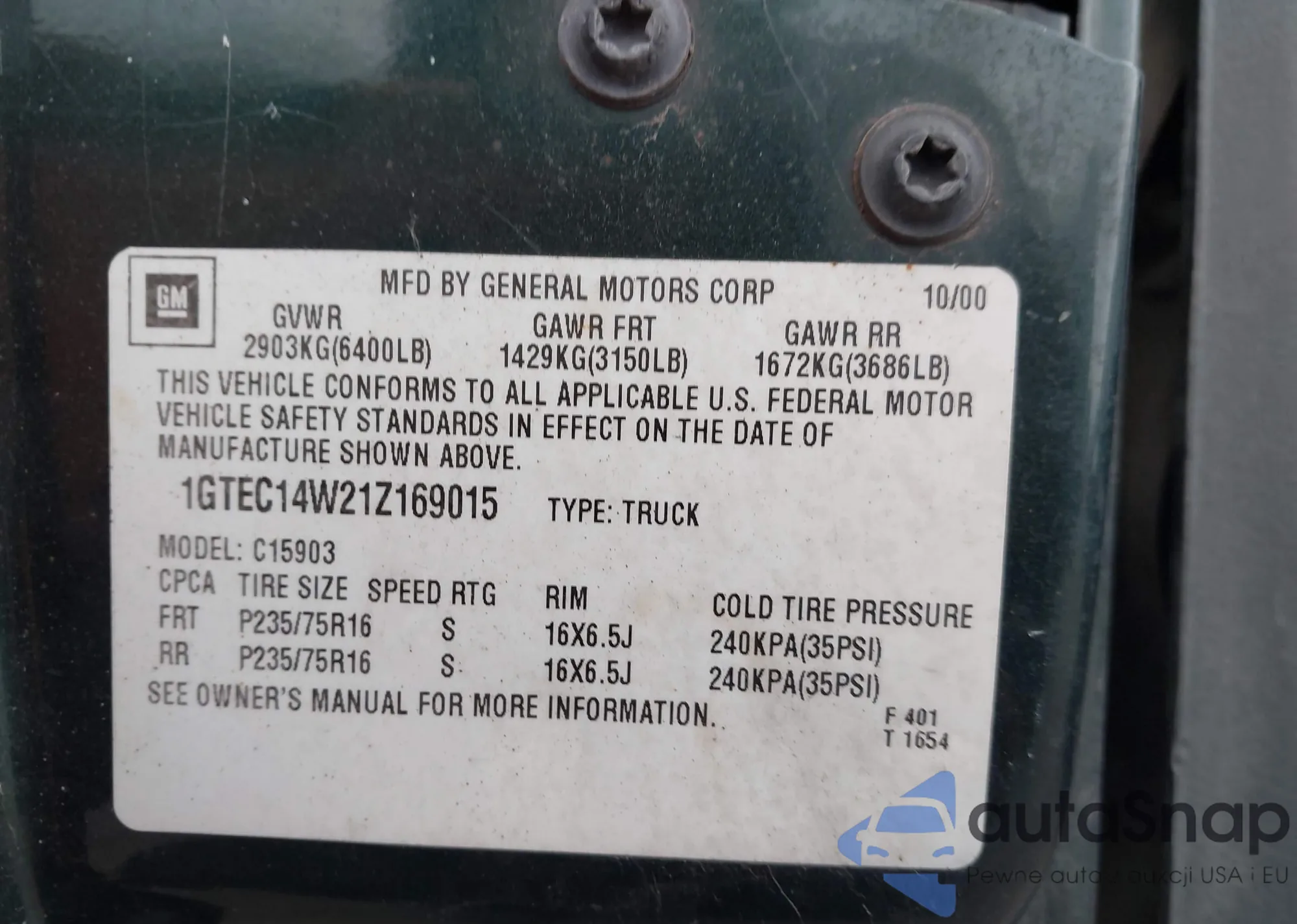 • VIN: 1GTEC14W21Z169015