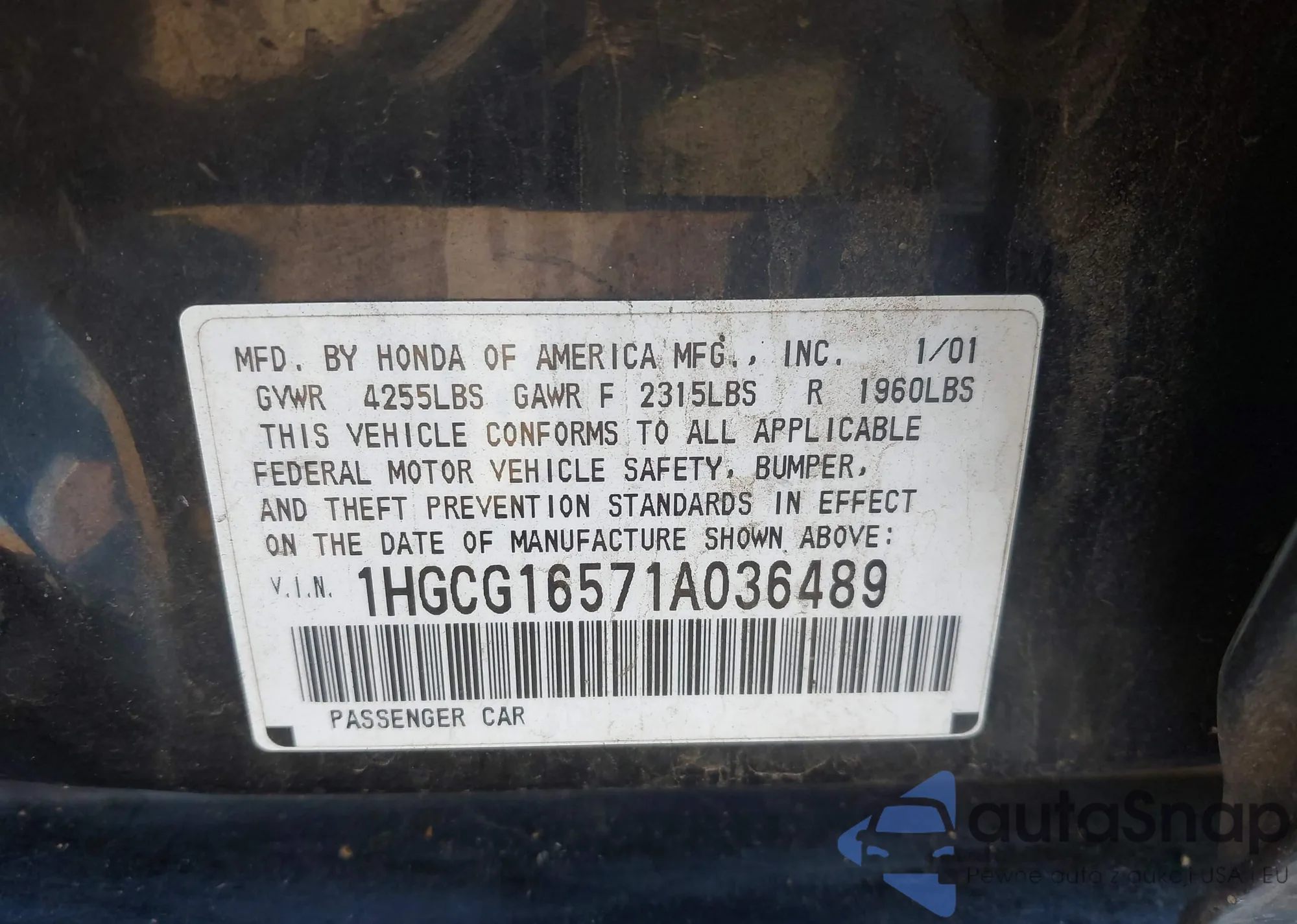 VIN: 1HGCG16571A036489