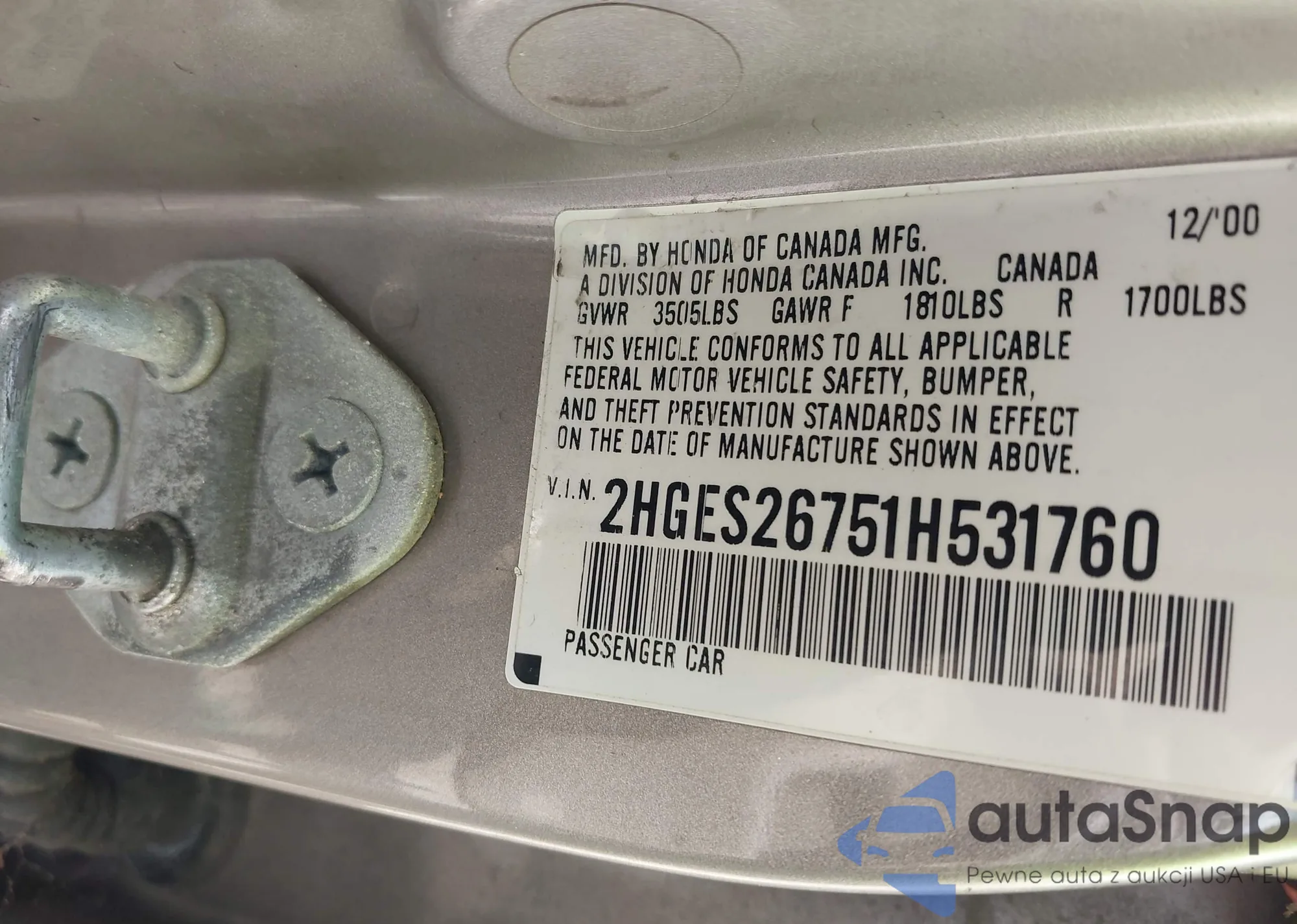 VIN: 2HGES26751H531760