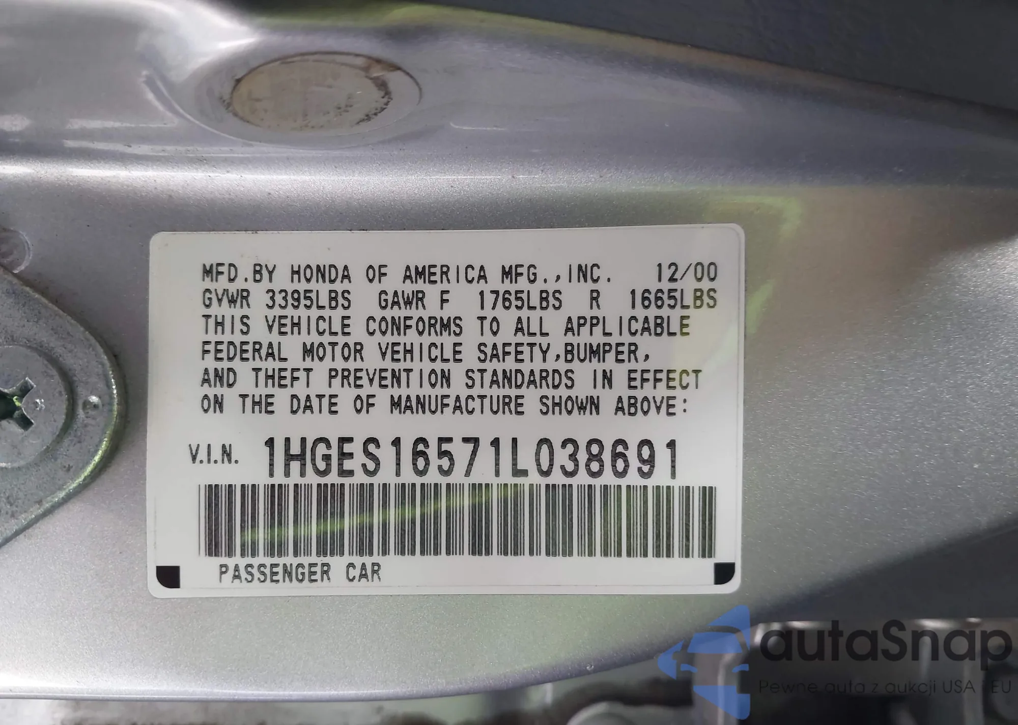 Автомобиль Honda Civic 2001 (VIN 1HGES16571L038691) ранее не участвовал в торгах. Документы чистые, пробег соответствует или ниже среднего по рынку. Продаётся страховой компанией — рекомендуем покупку. Доставка в порт займет около 6–8 недель.