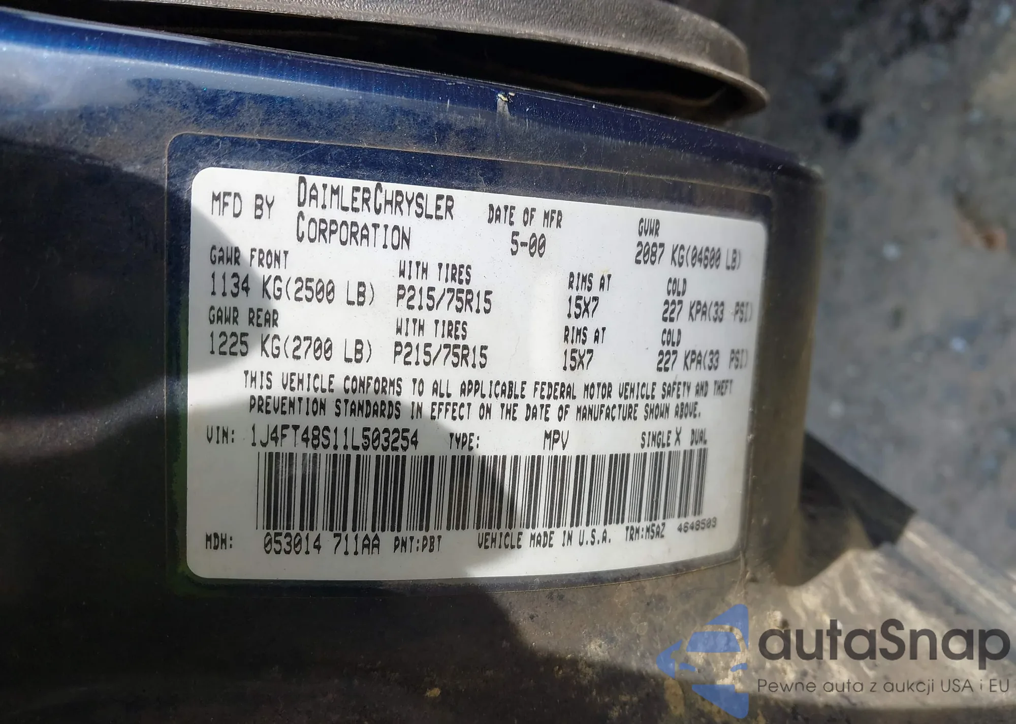 VIN: 1J4FT48S11L503254