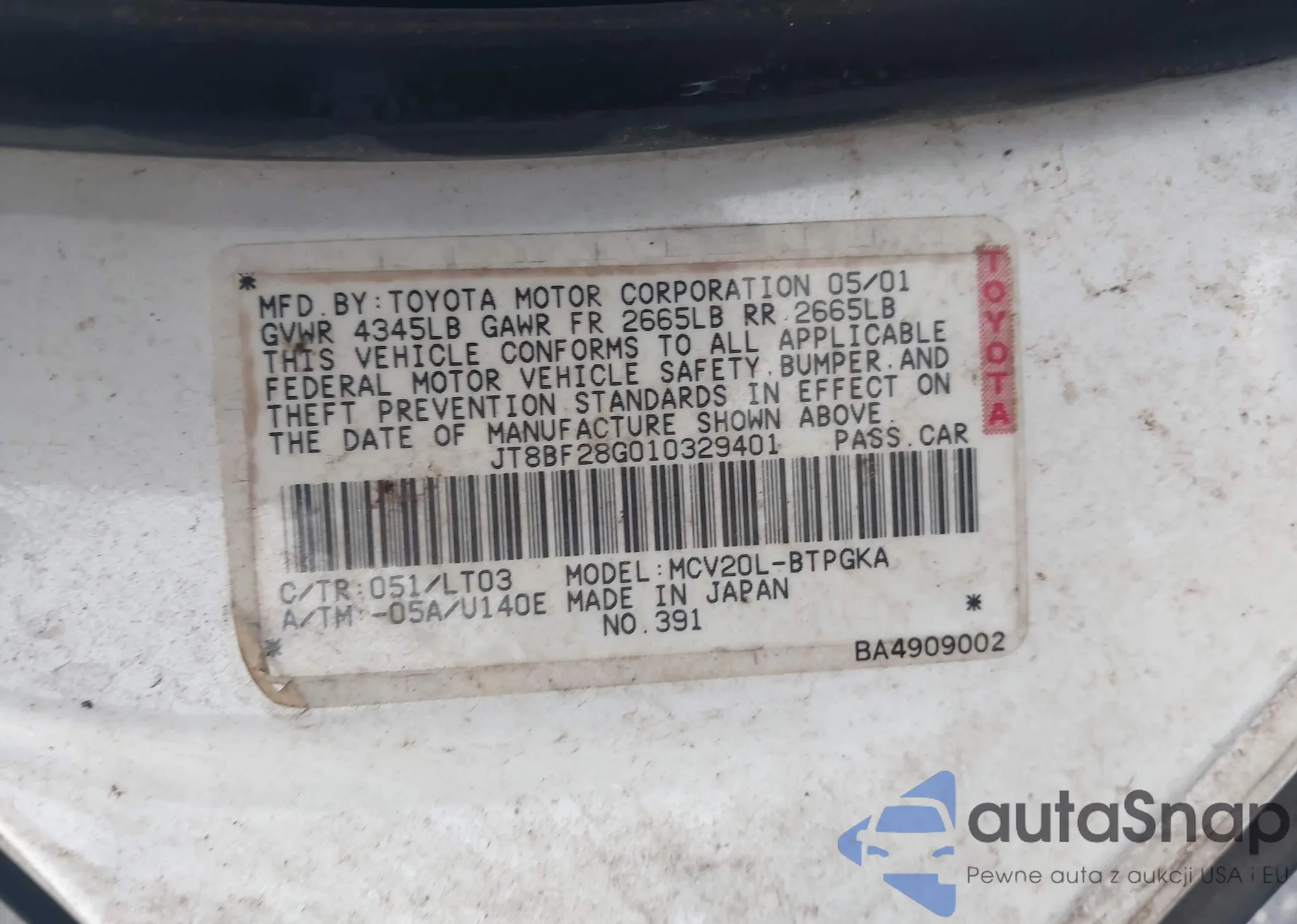 VIN: JT8BF28G010329401