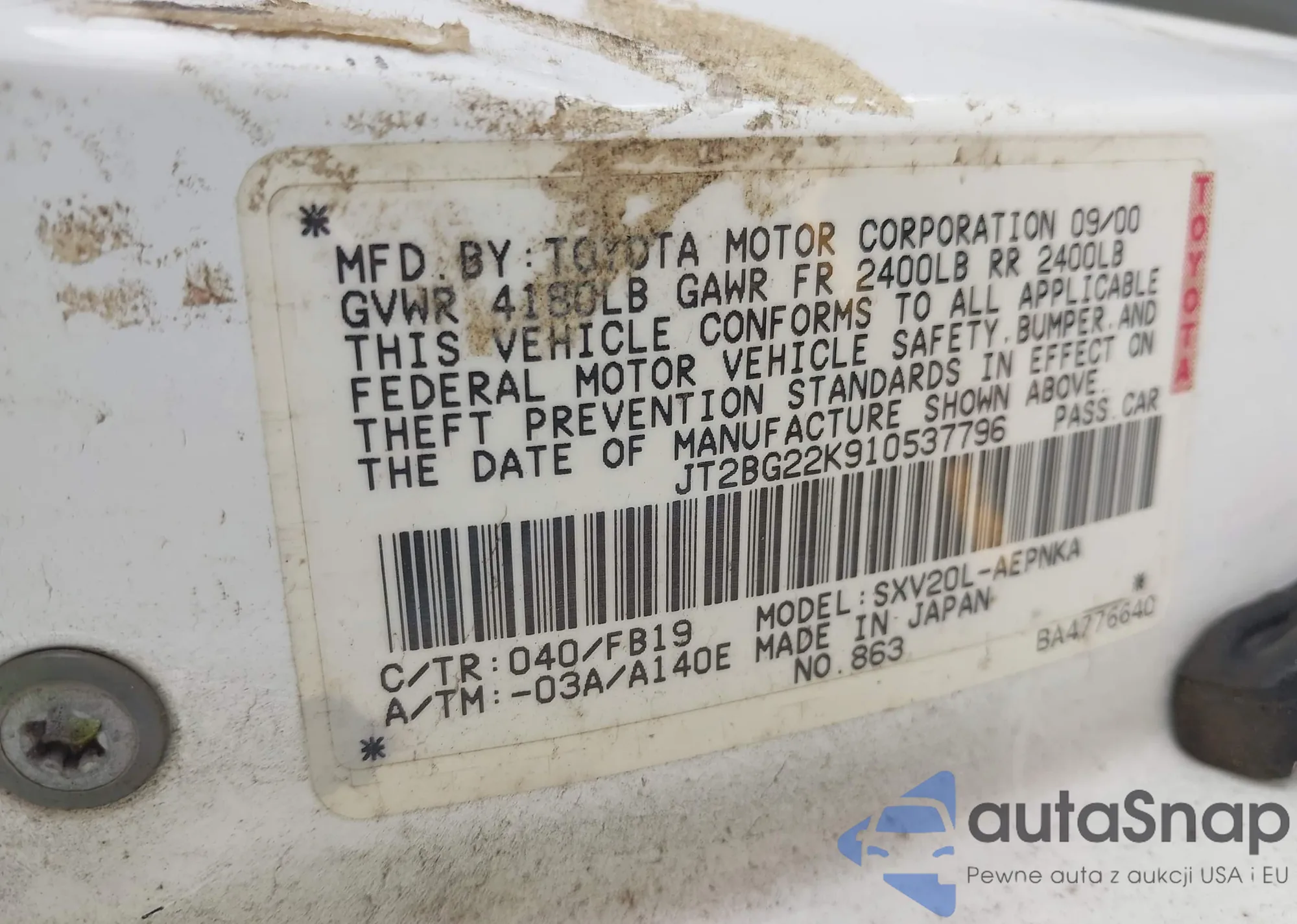 VIN: JT2BG22K910537796