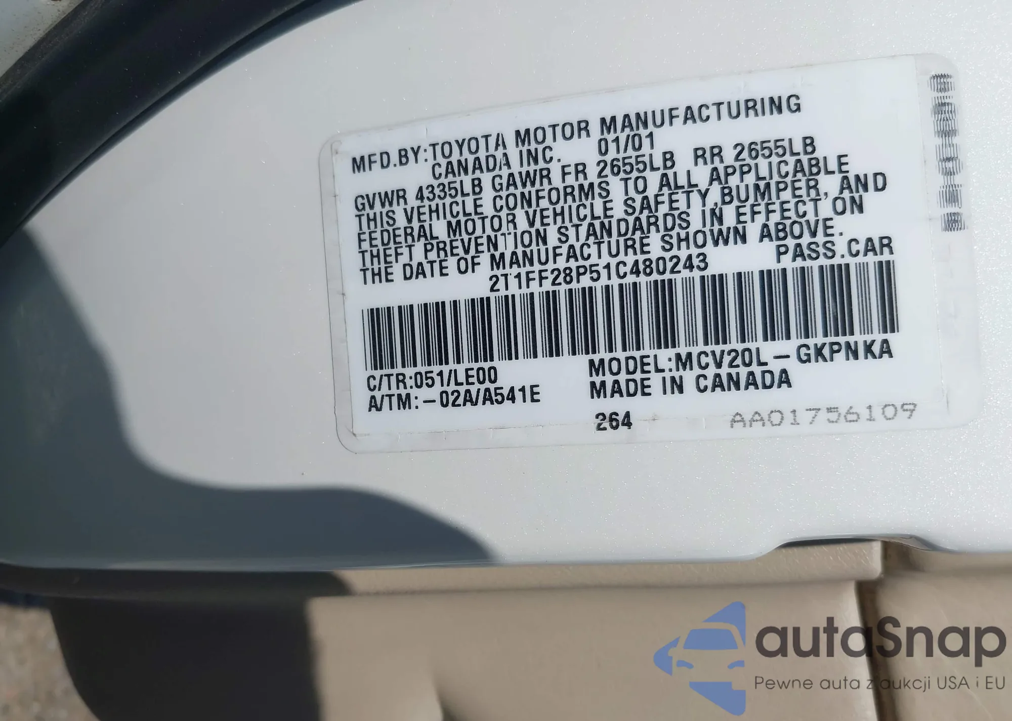 VIN: 2T1FF28P51C480243