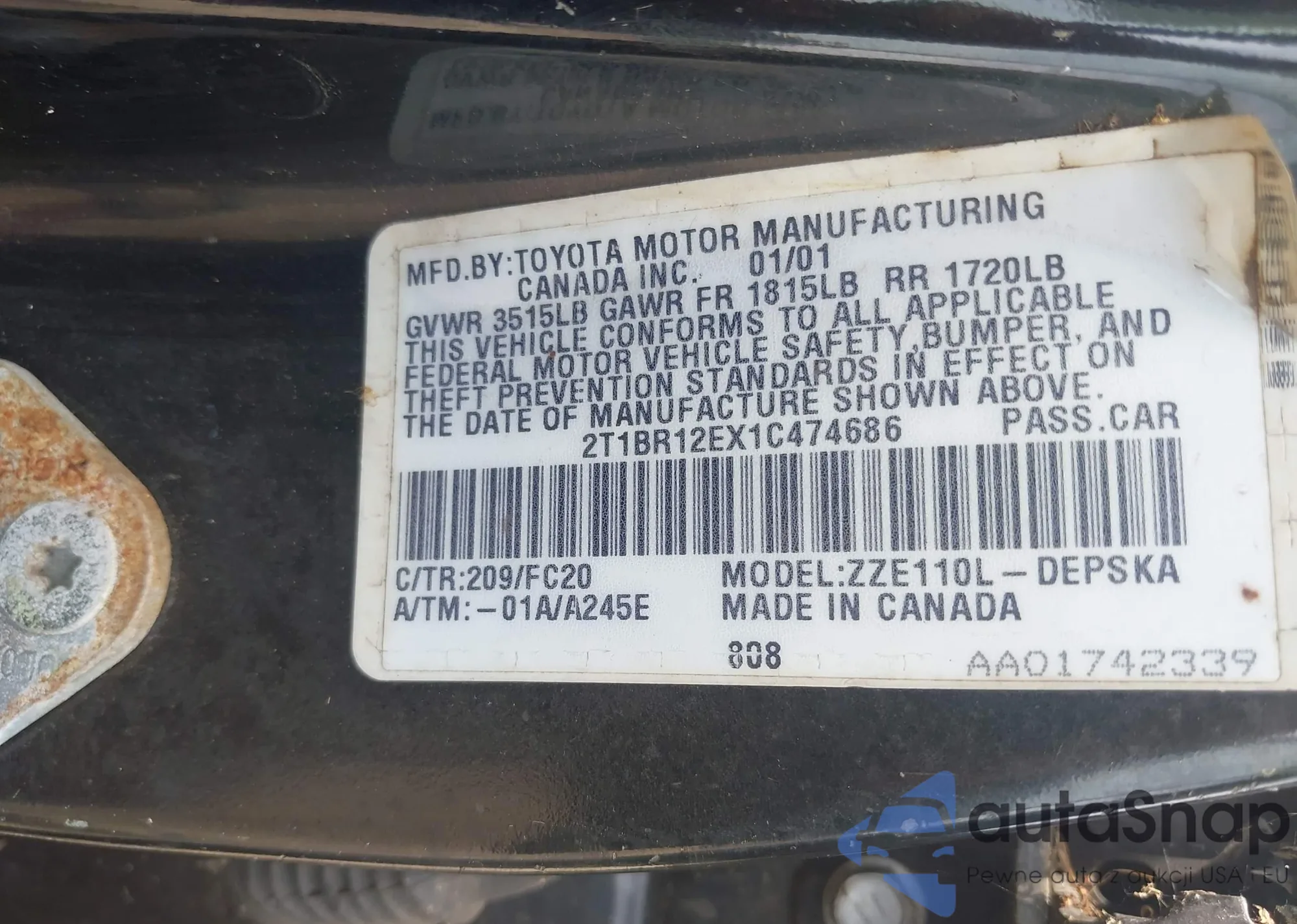 VIN: 2T1BR12EX1C474686