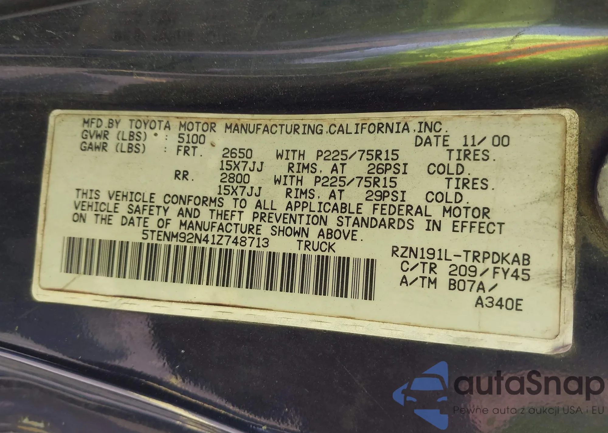 VIN: 5TENM92N41Z748713