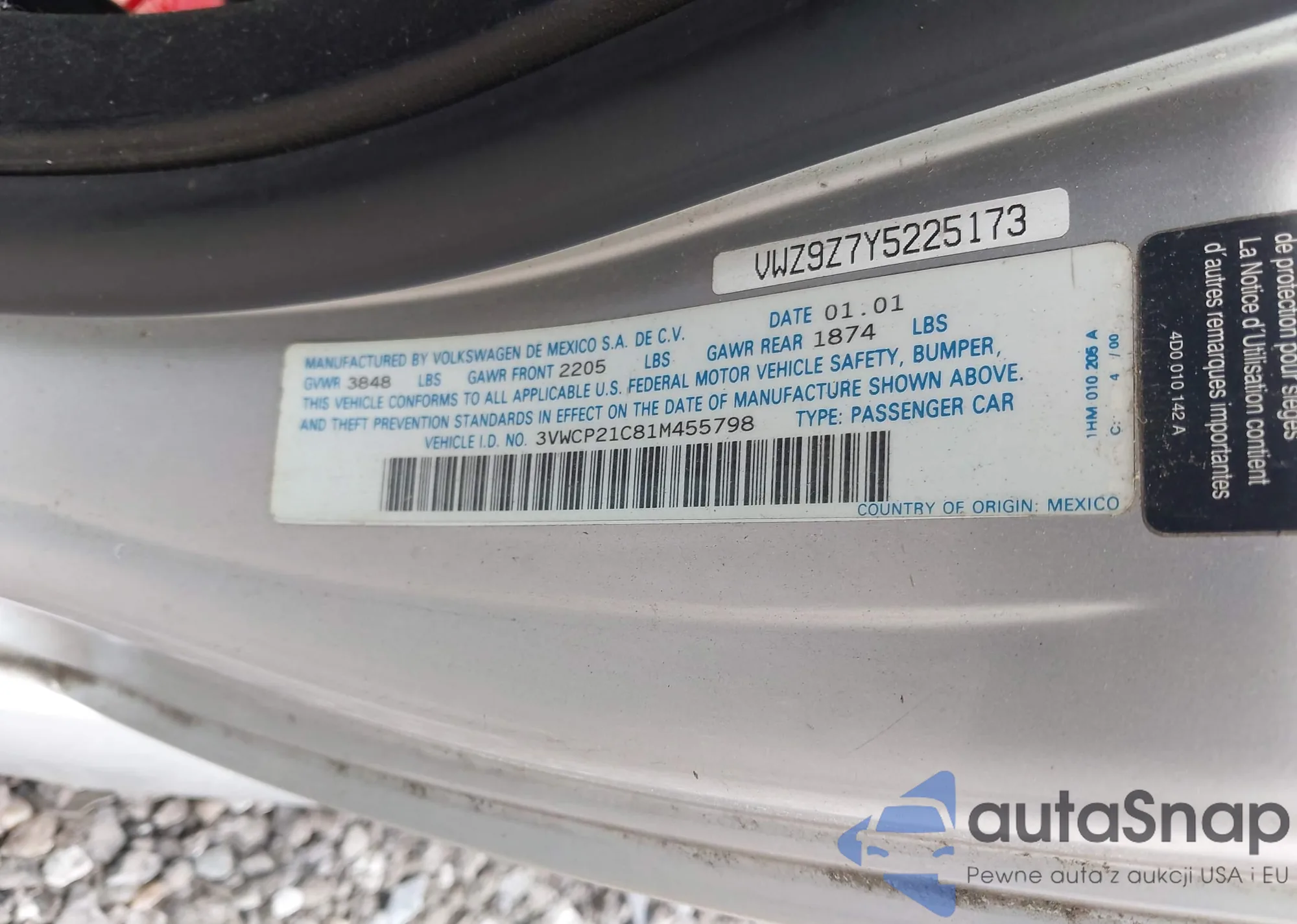 VIN: 3VWCP21C81M455798