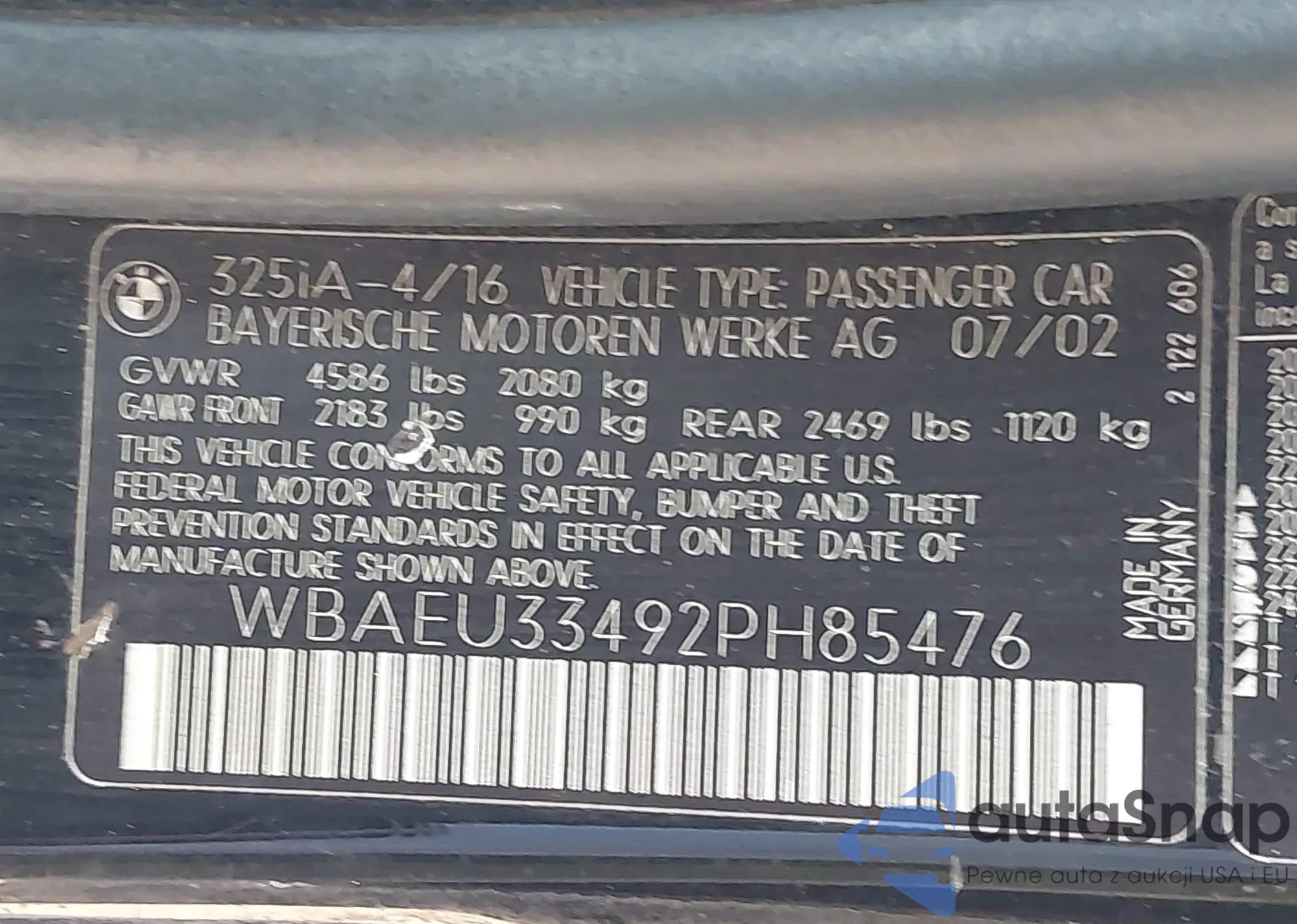 VIN: WBAEU33492PH85476