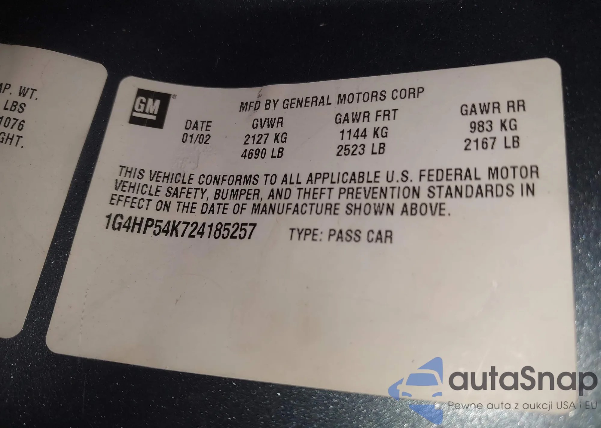 Автомобиль Buick LeSabre 2002 (VIN 1G4HP54K724185257) ранее не участвовал в торгах. Документы чистые, пробег соответствует или ниже среднего по рынку. Продаётся страховой компанией — рекомендуем покупку. Доставка в порт займет около 6–8 недель.