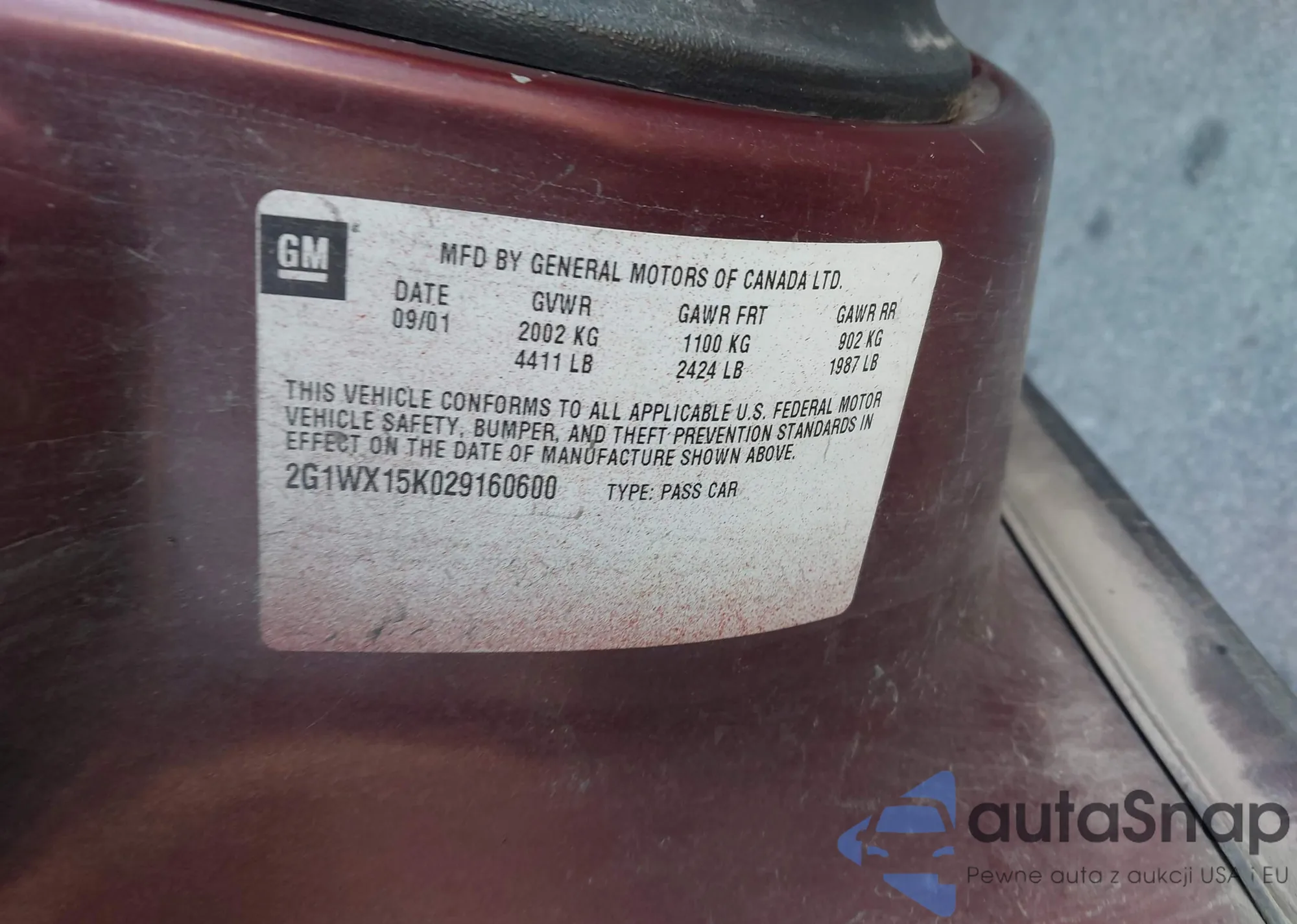 VIN: 2G1WX15K029160600
