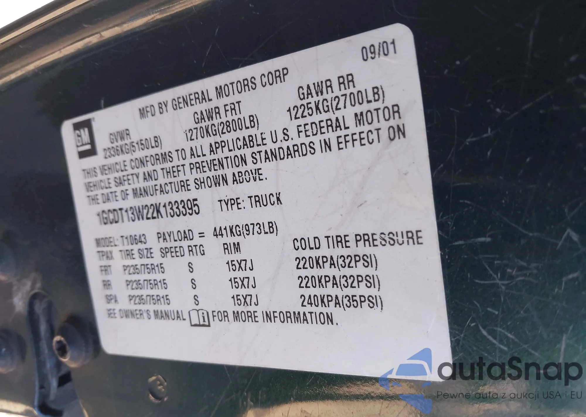 Автомобиль Chevrolet S-10 Pickup 2002 (VIN 1GCDT13W22K133395) ранее не участвовал в торгах. Документы чистые, пробег соответствует или ниже среднего по рынку. Продаётся страховой компанией — рекомендуем покупку. Доставка в порт займет около 6–8 недель.