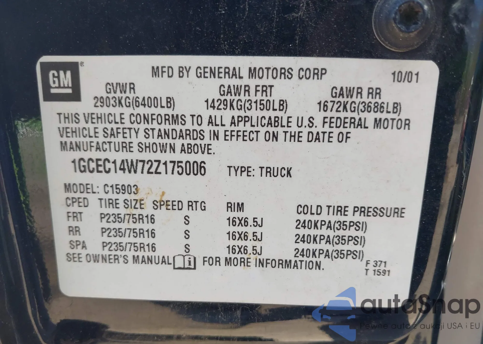 VIN: 1GCEC14W72Z175006