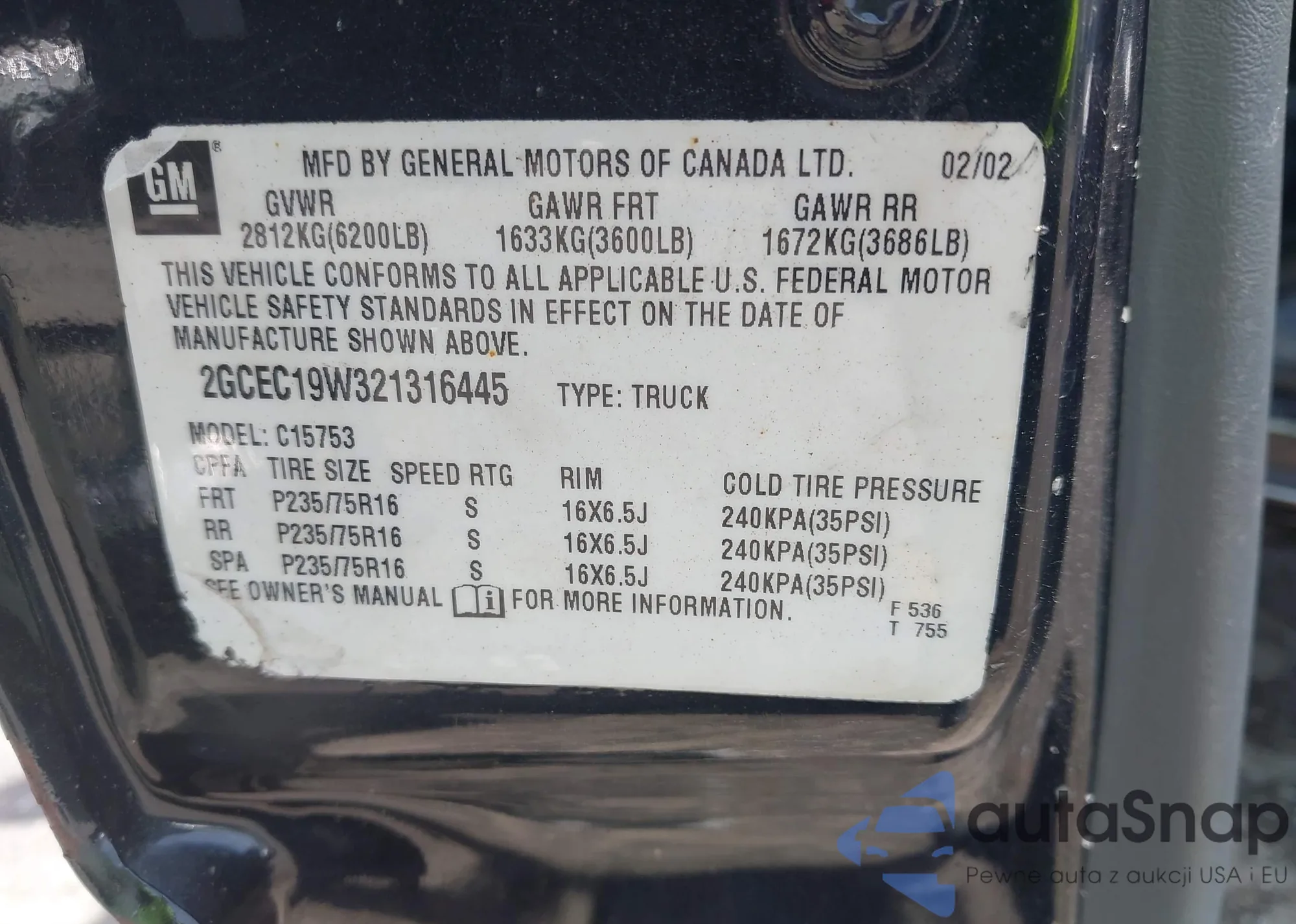 VIN: 2GCEC19W321316445