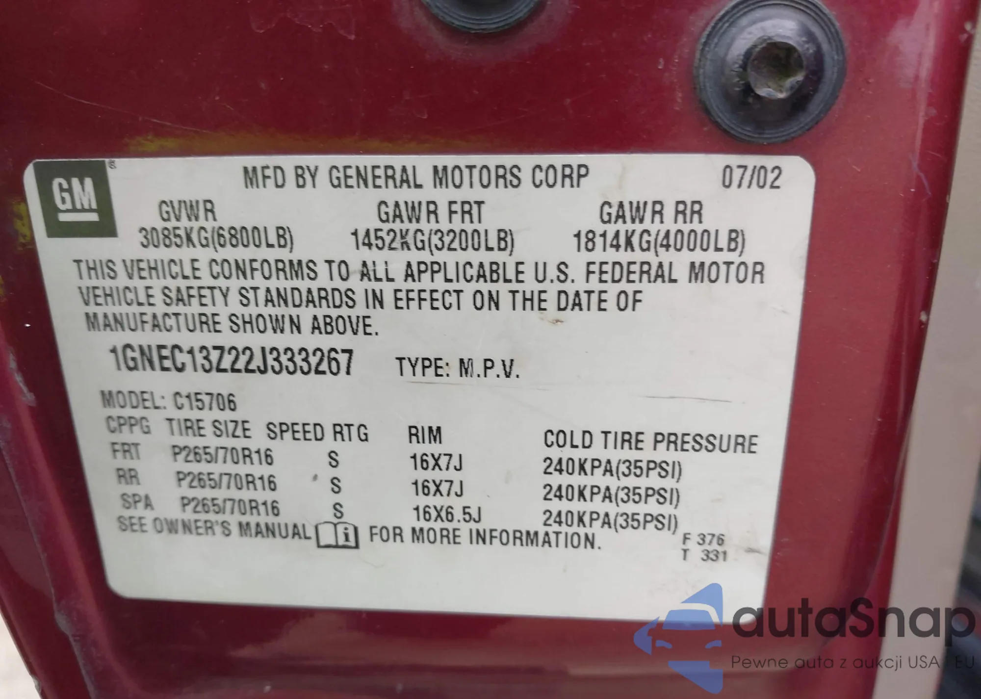 • VIN: 1GNEC13Z22J333267