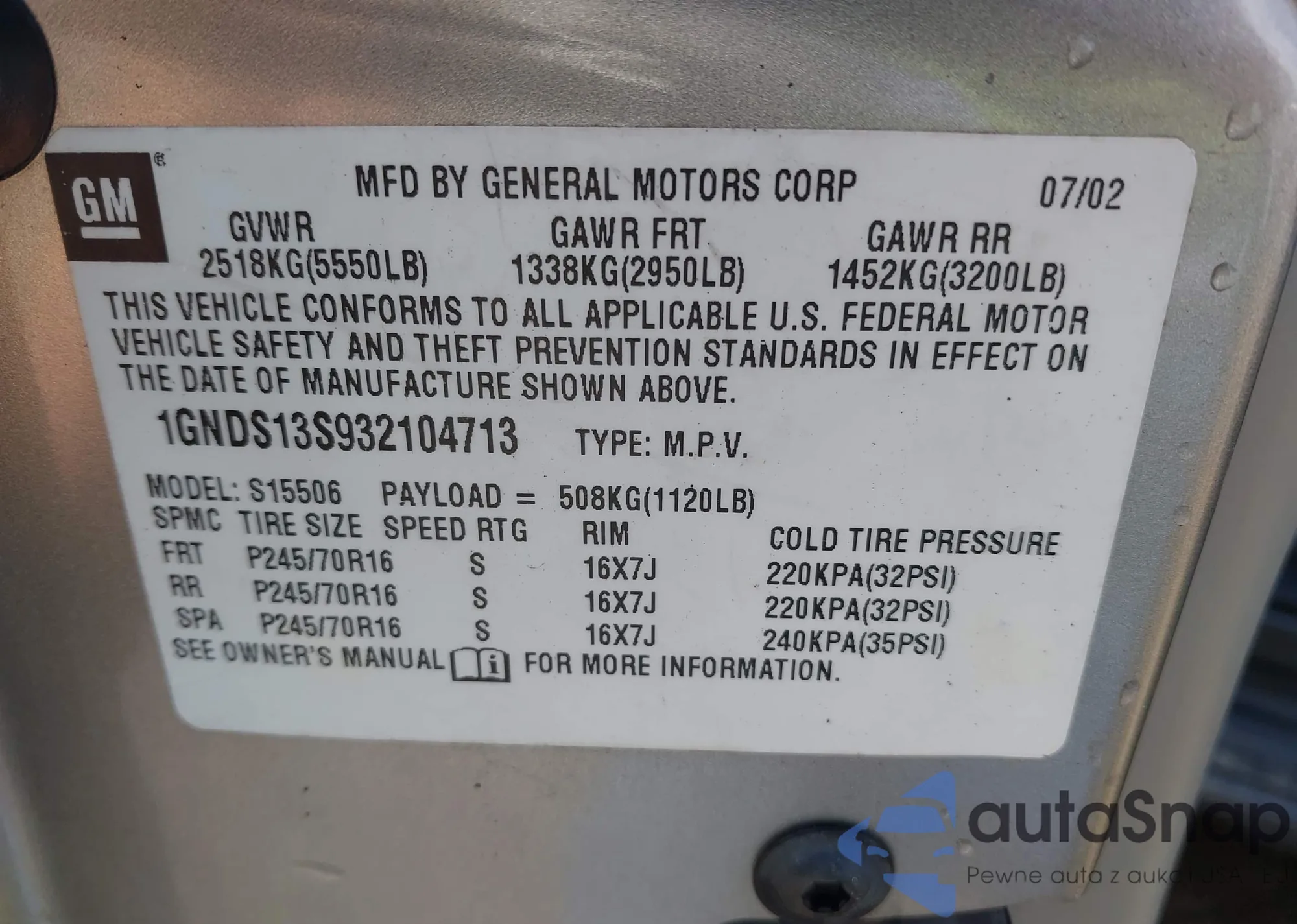 VIN: 1GNDT13S722133932