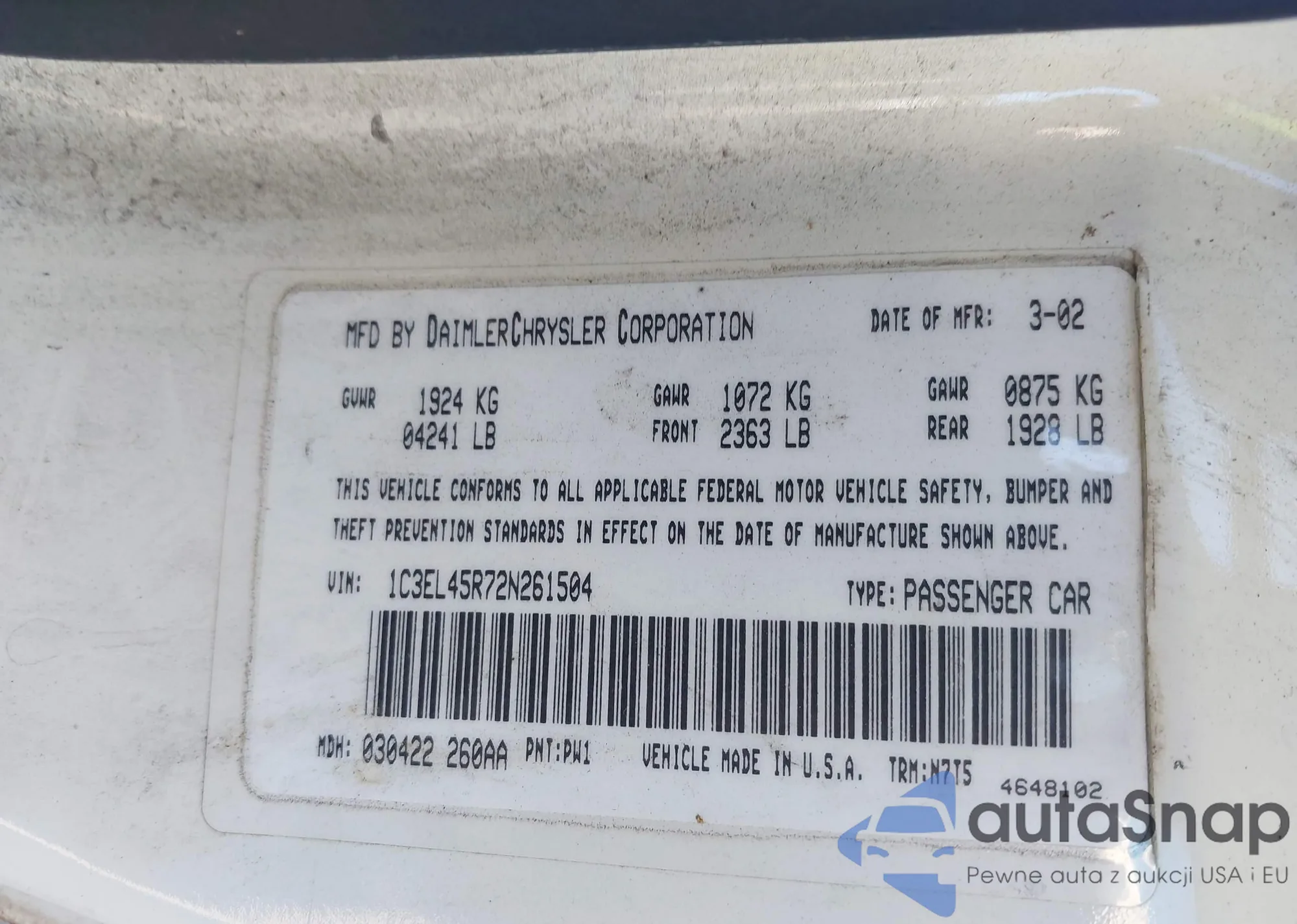 VIN: 1C3EL45R72N261504