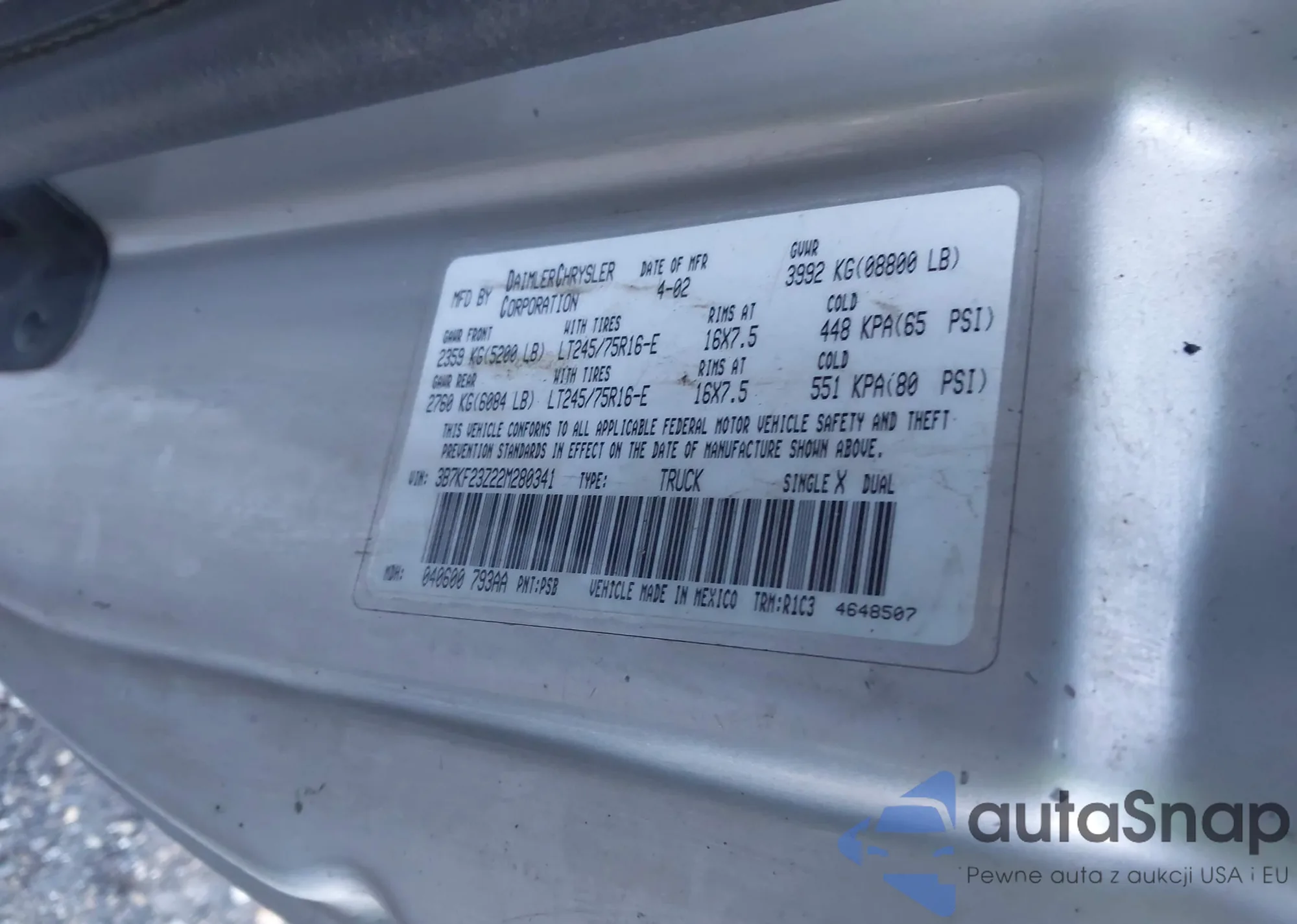 VIN: 3B7KF23Z22M280341