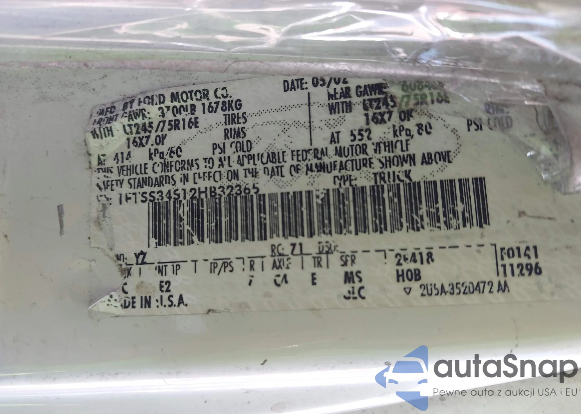 VIN: 1FTSS34S12HB32365