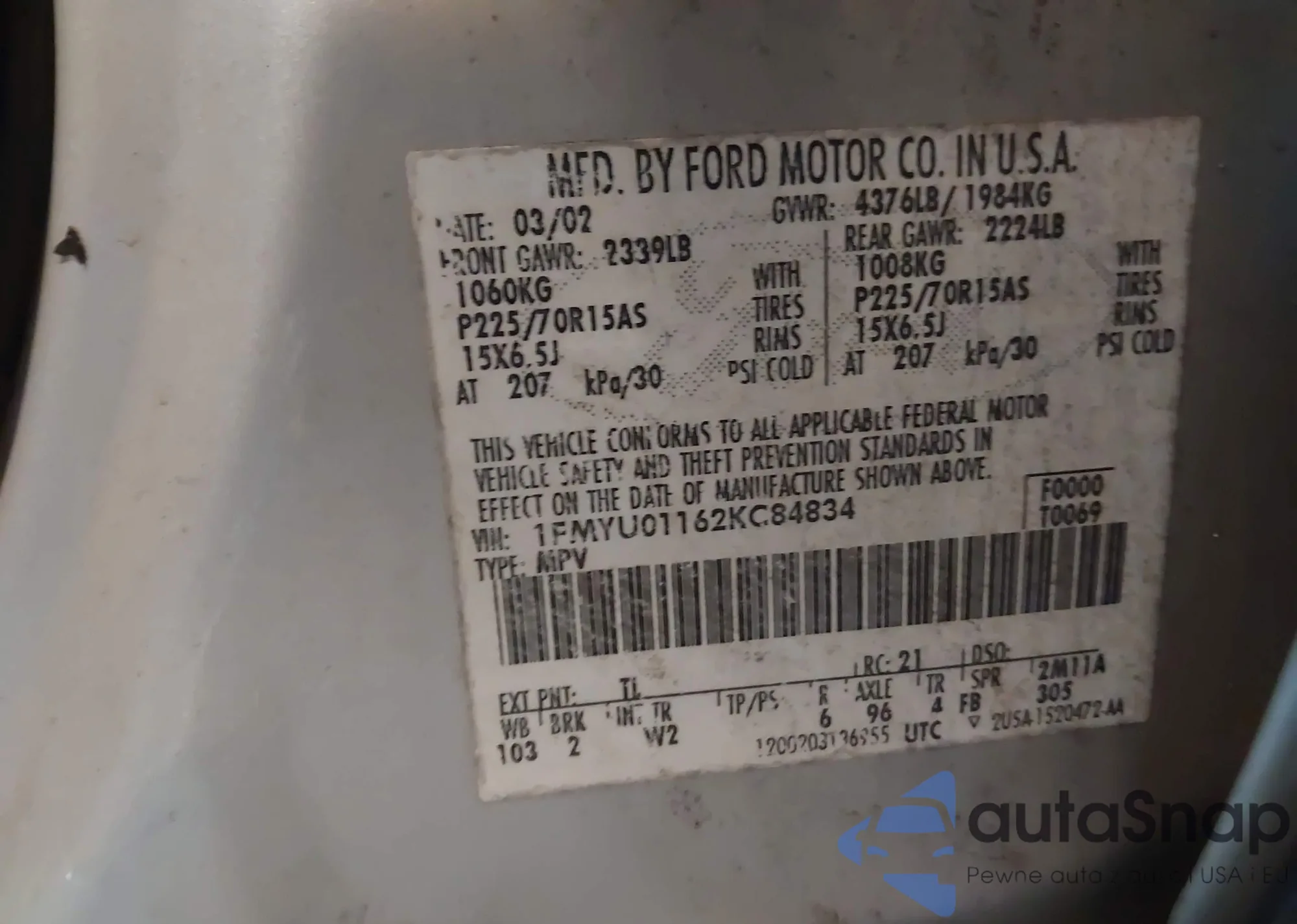 1FMYU01162KC84834 IAAI