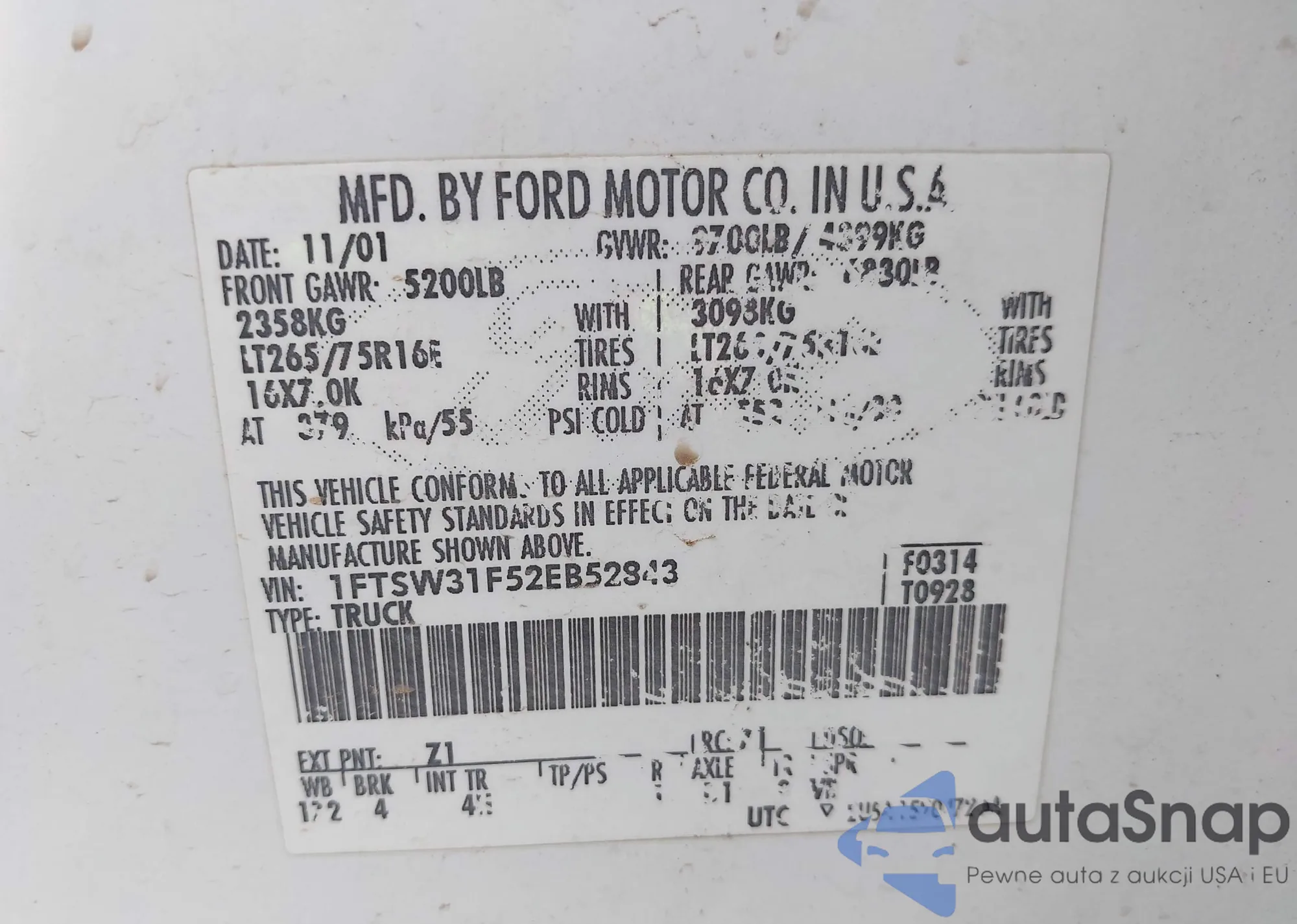 • VIN: 1FTSW31F52EB52843