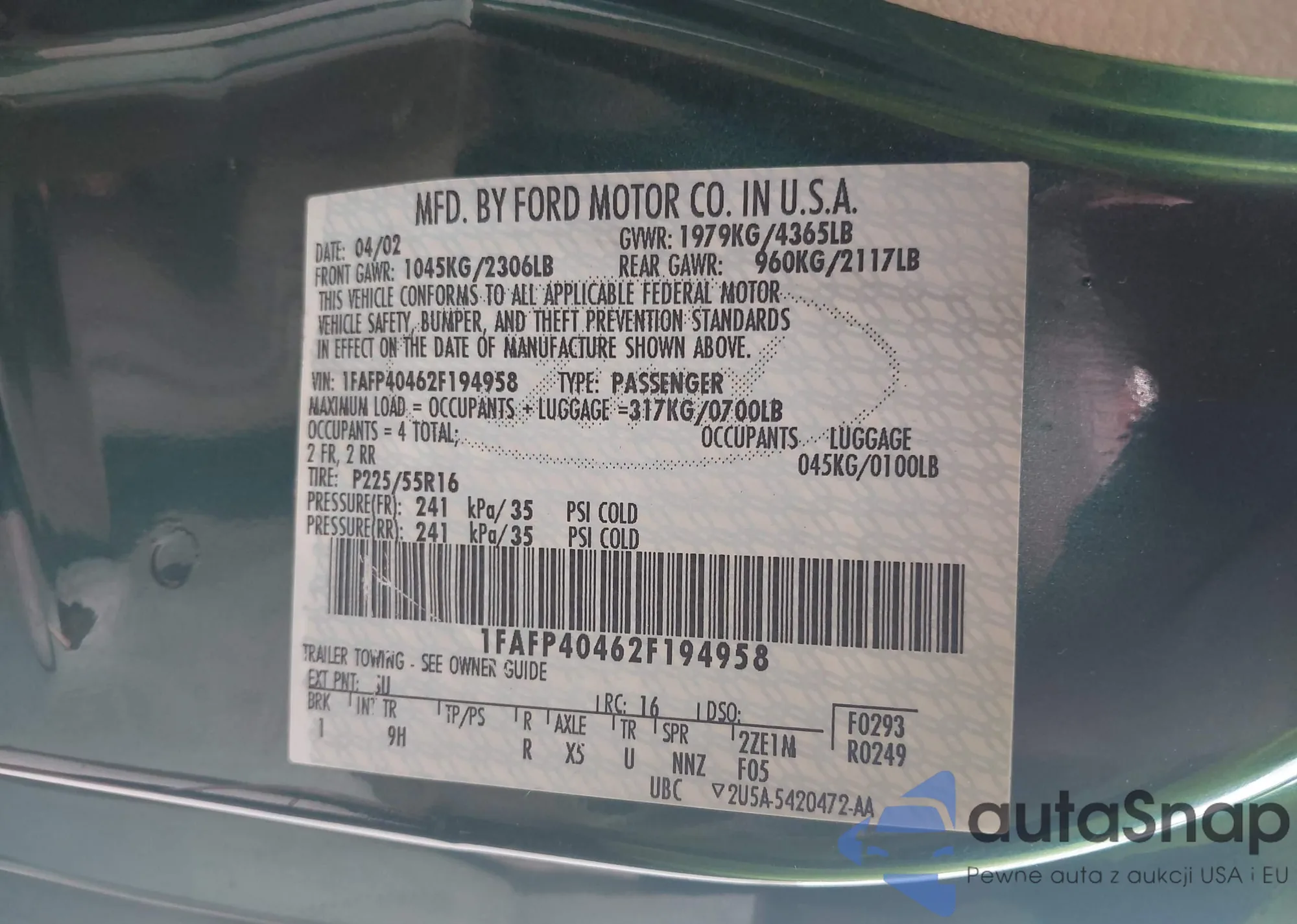 VIN: 1FAFP40462F194958