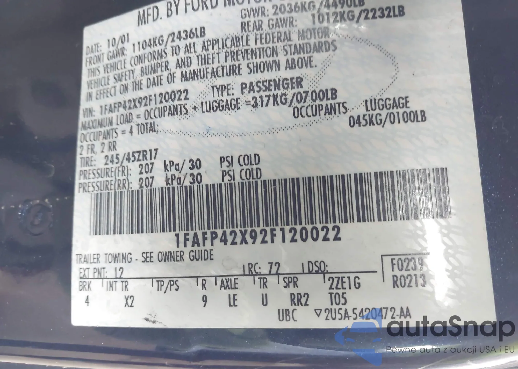• VIN: 1FAFP42X92F120022