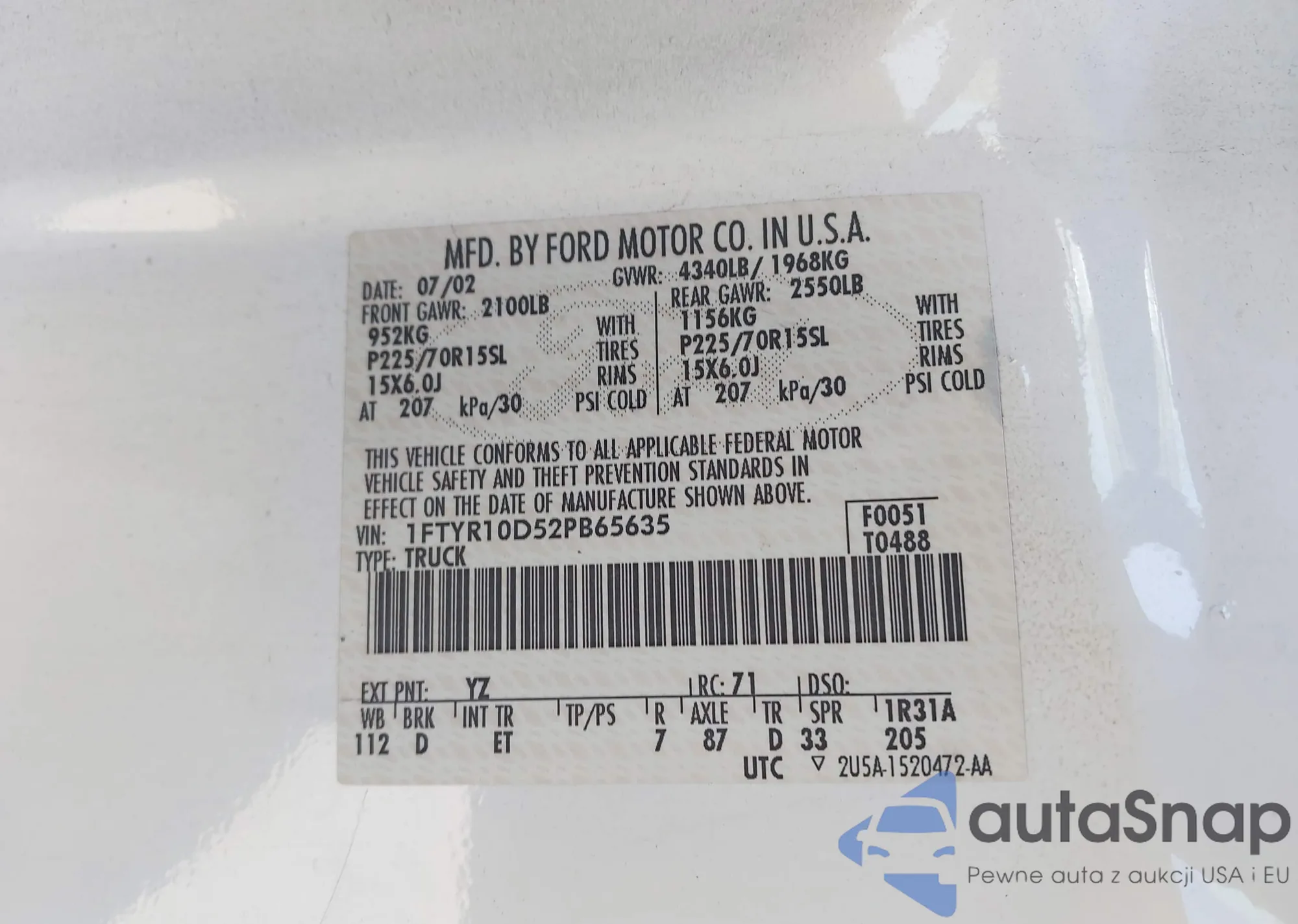 VIN: 1FTYR10D52PB65635