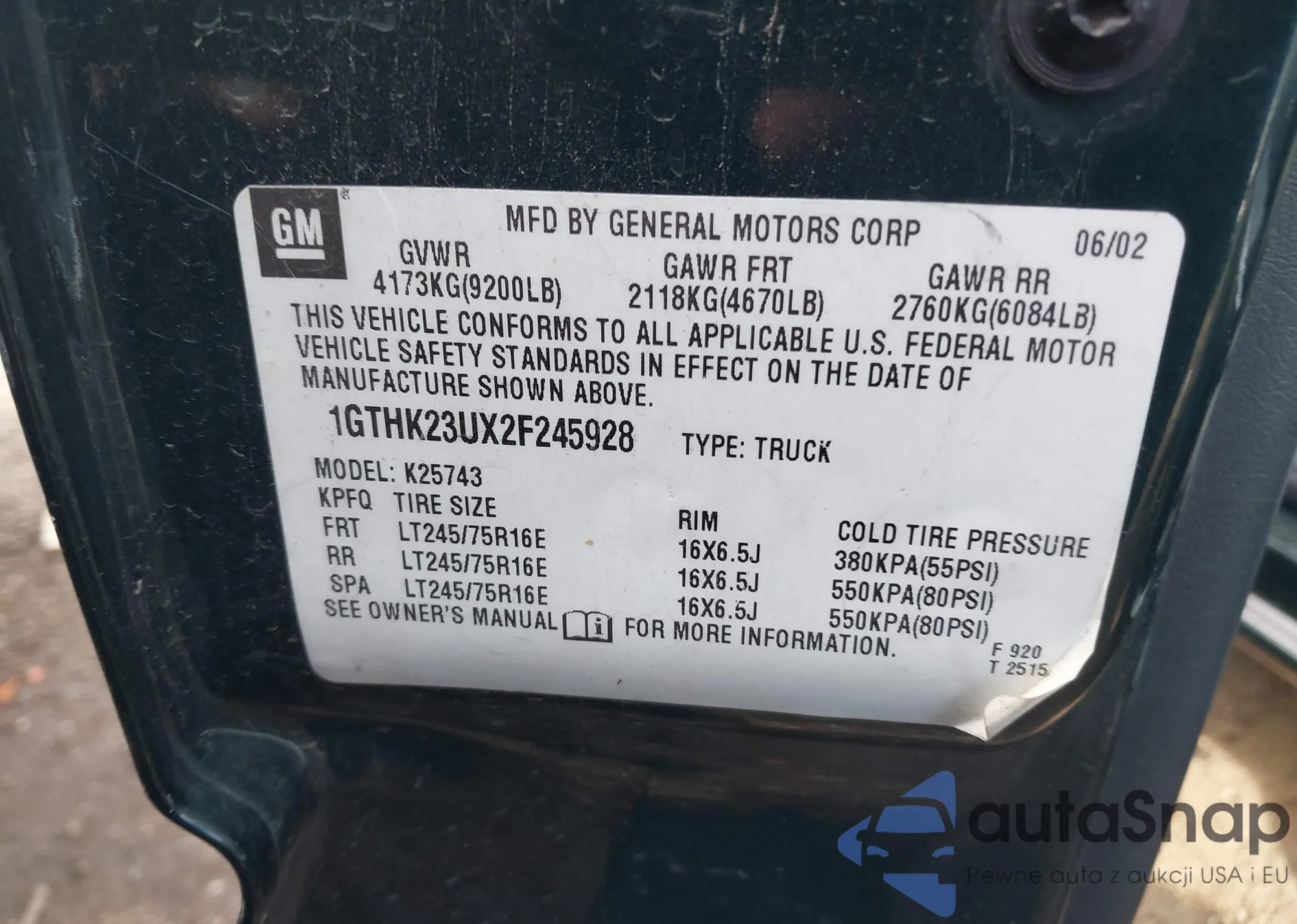 VIN: 1GTHK23UX2F245928