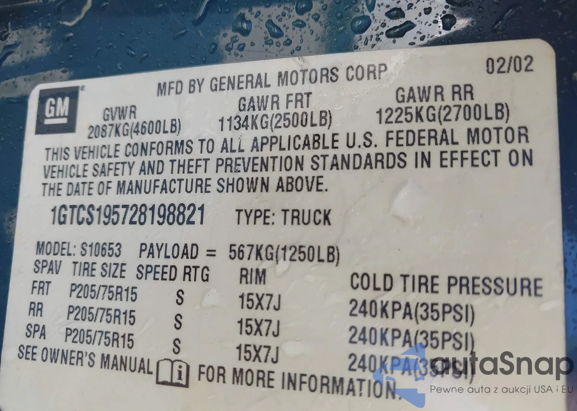 VIN: 1GTCS195728198821