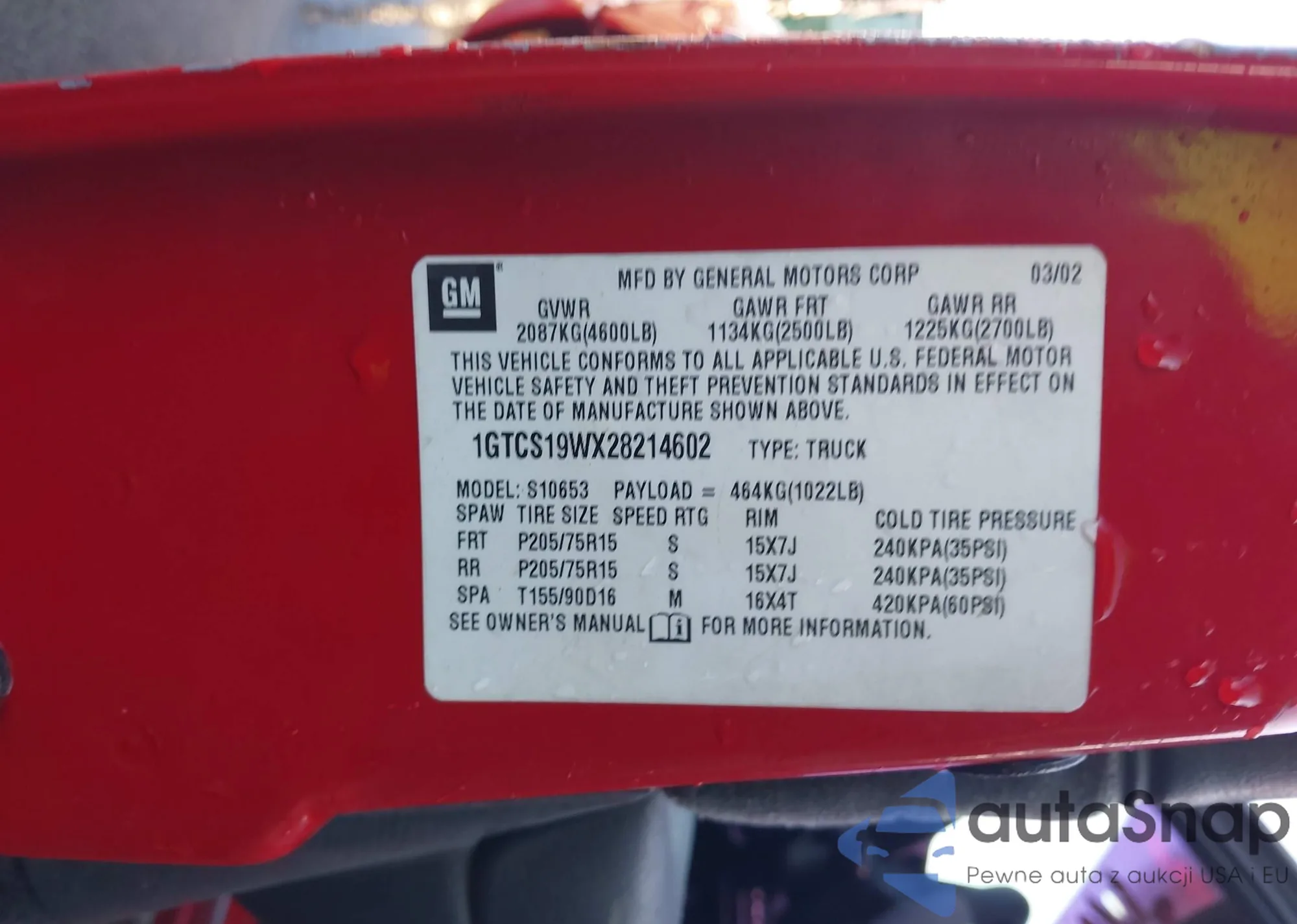 VIN: 1GTCS19WX28214602