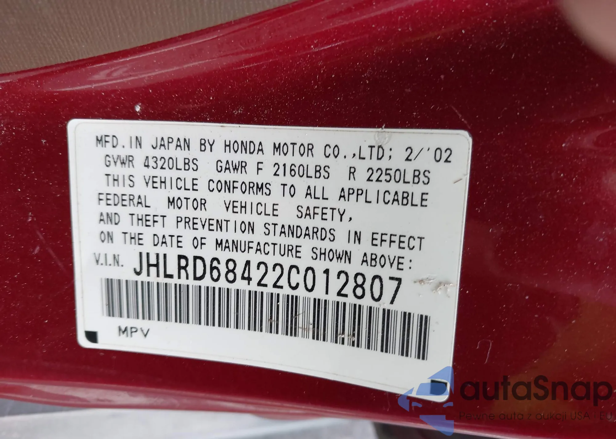 VIN: JHLRD68422C012807