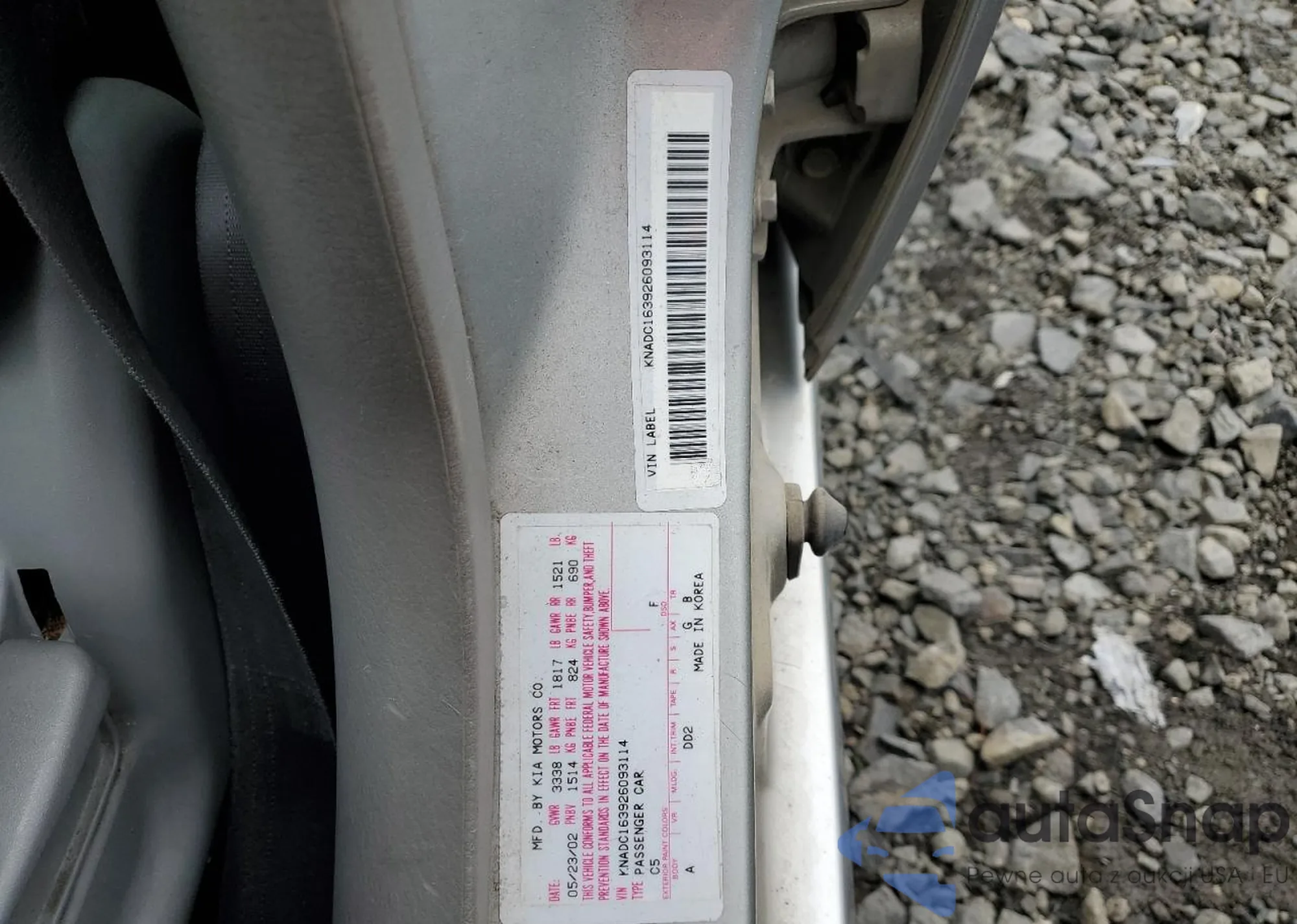 Автомобиль Kia Rio 2002 (VIN KNADC163926093114) имеет документы, препятствующие регистрации. Могут возникнуть сложности при экспорте и регистрации. Обратитесь к экспертам AutaSnap для поиска альтернатив.