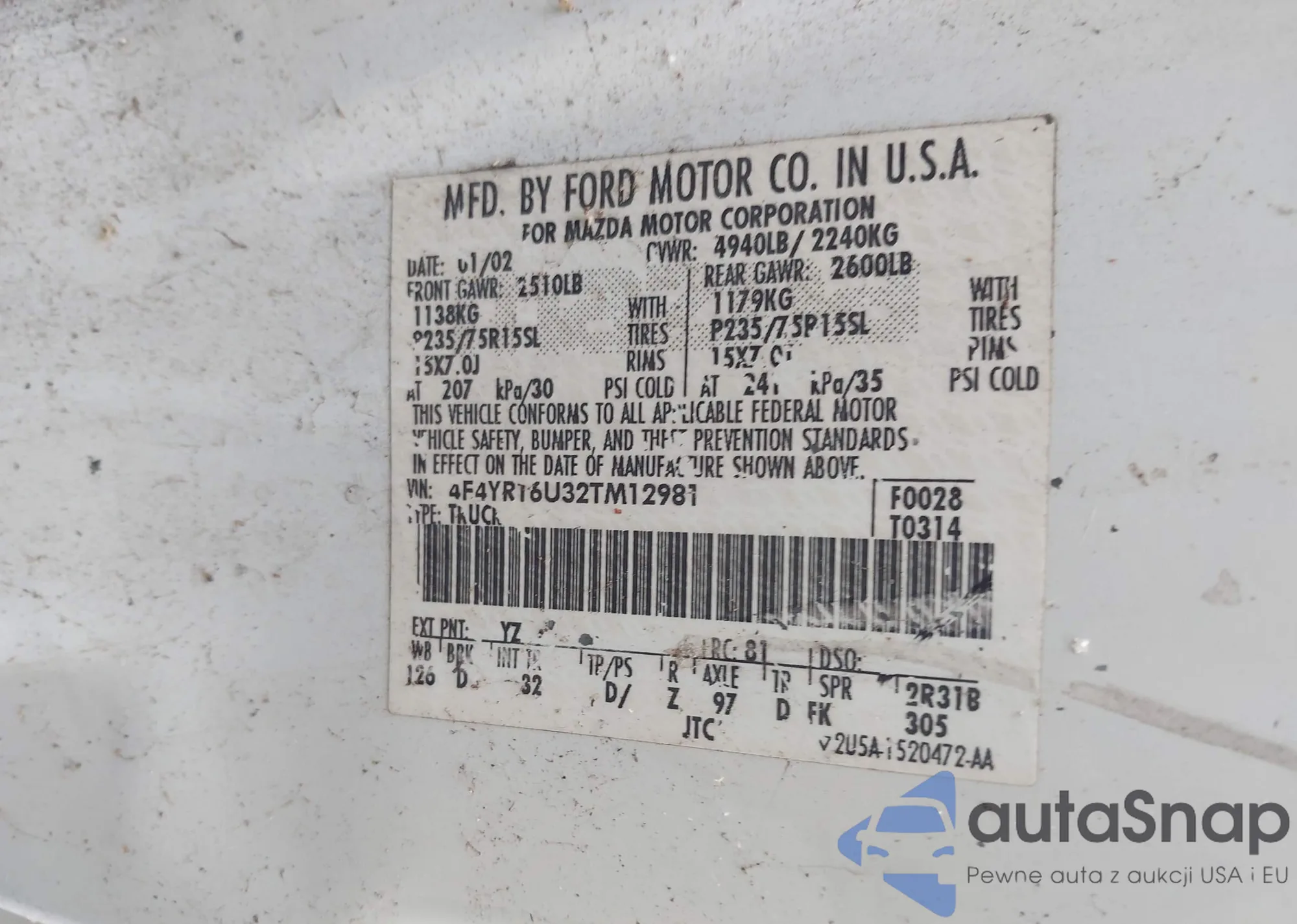 VIN: 4F4YR16U32TM12981