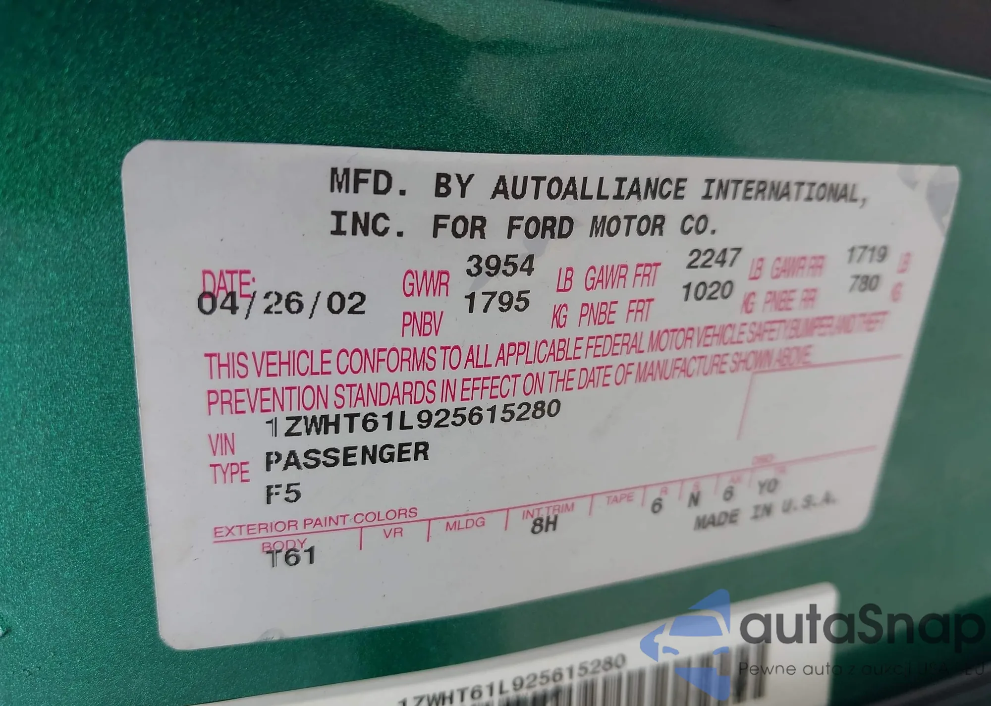 VIN: 1ZWHT61L925615280