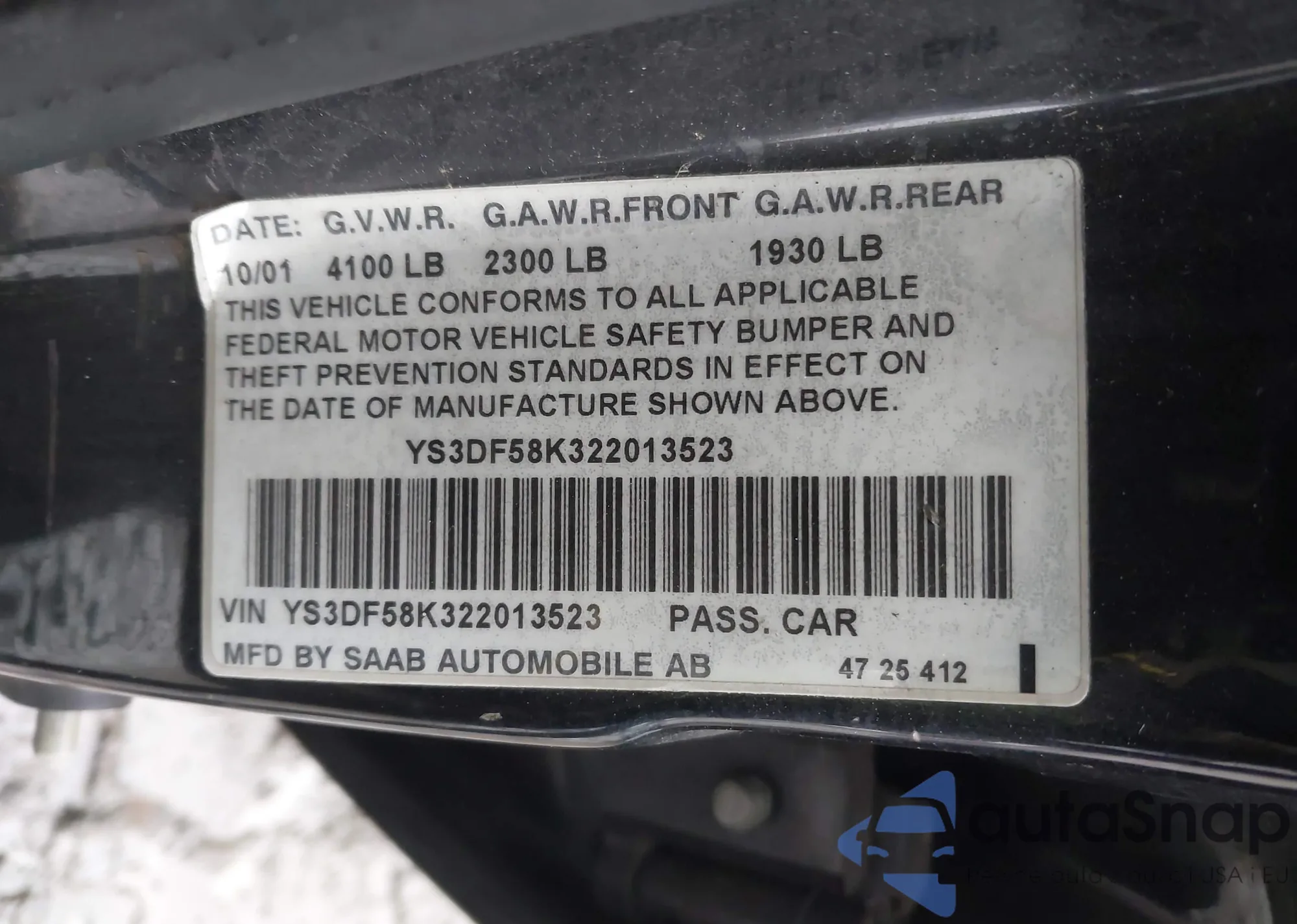 • VIN: YS3DF58K322013523