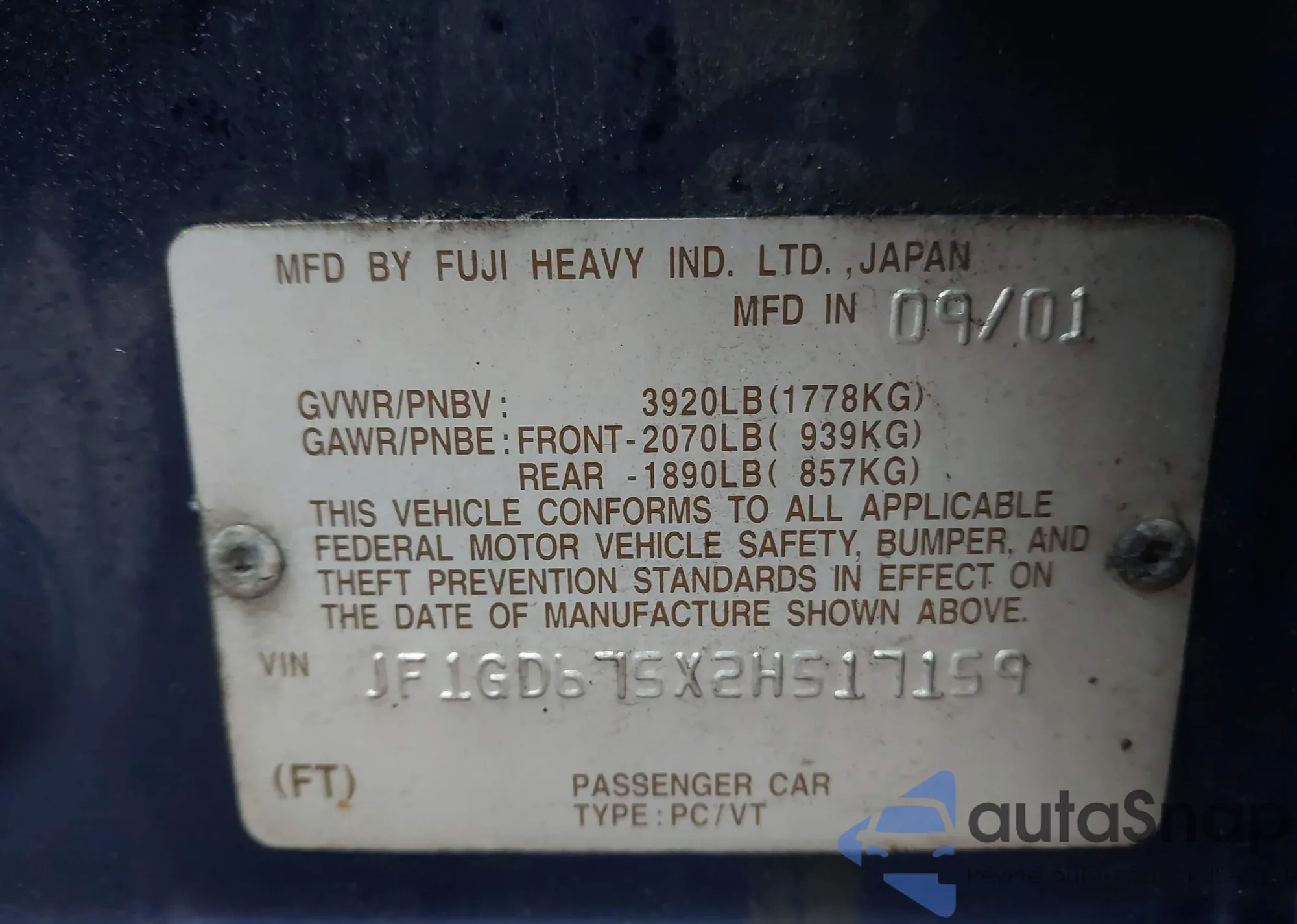 VIN: JF1GD675X2H517159