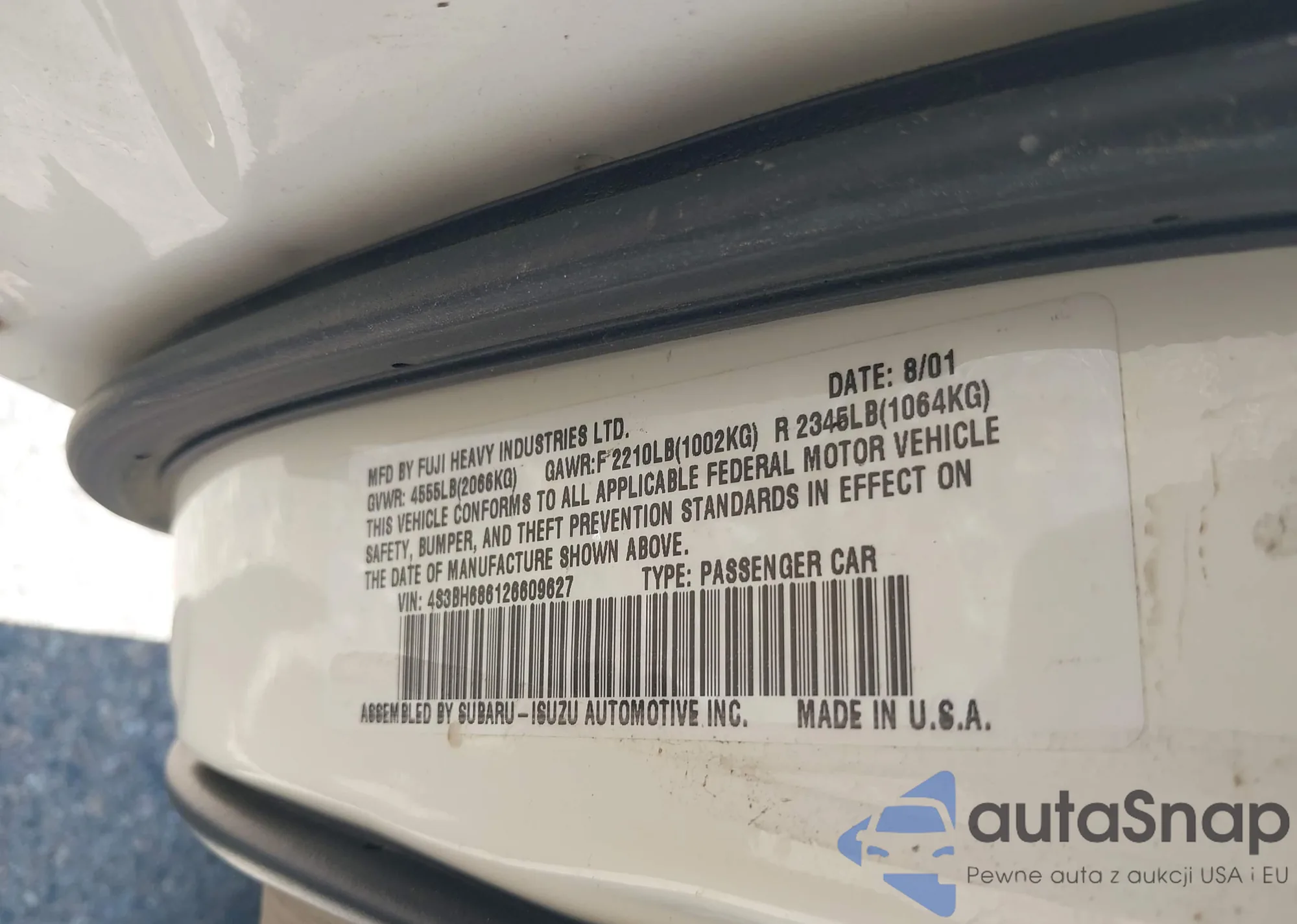 VIN: 4S3BH686126609627