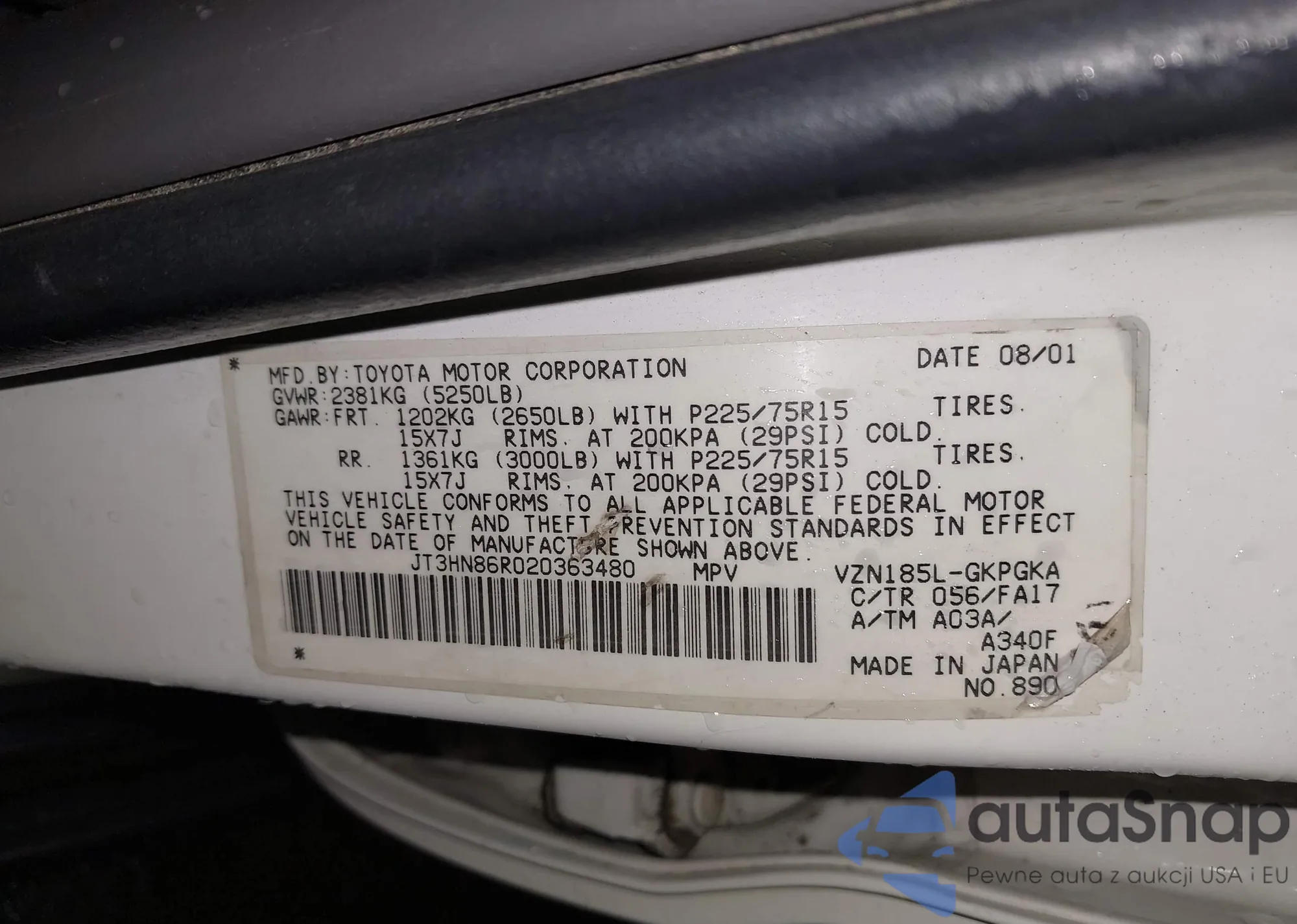 VIN: JT3HN86R020363480