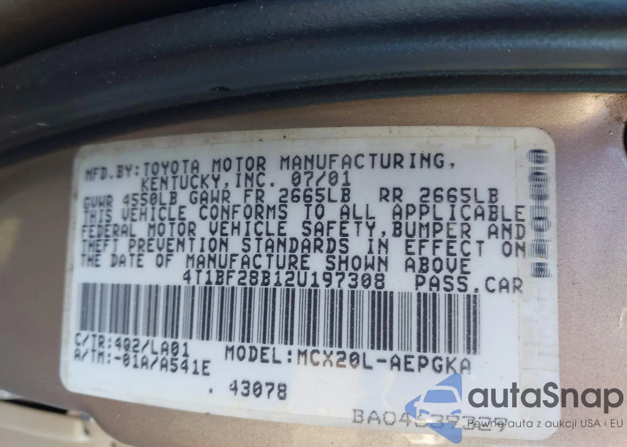 VIN: 4T1BF28B12U197308