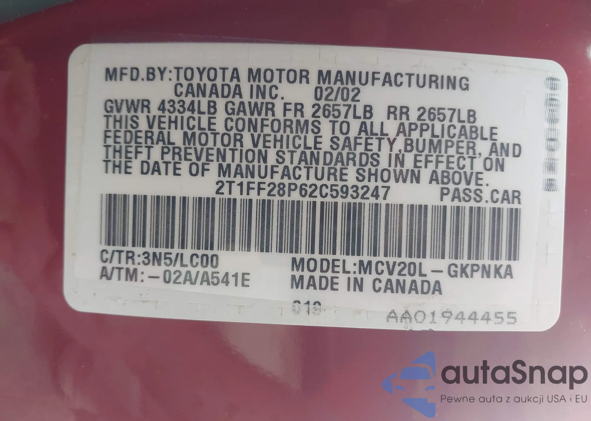 VIN: 2T1FF28P62C593247