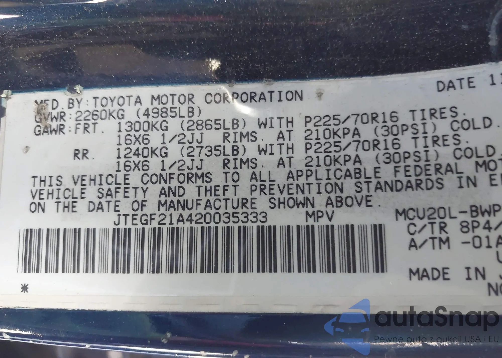 VIN: JTEGF21A420035333