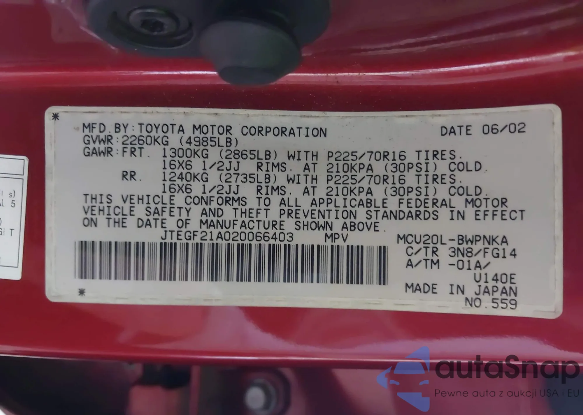 VIN: JTEGF21A020066403
