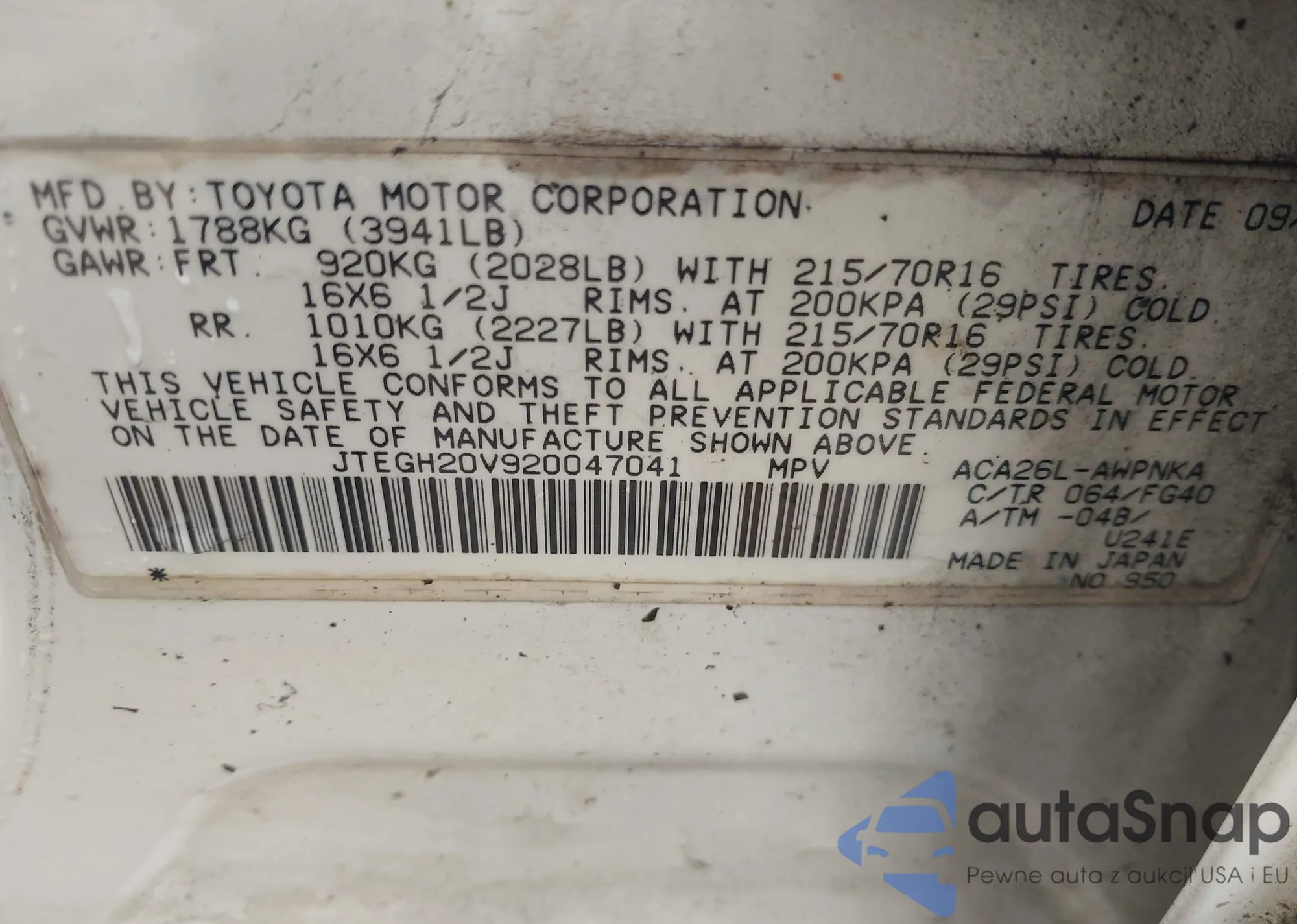 VIN: JTEGH20V920047041