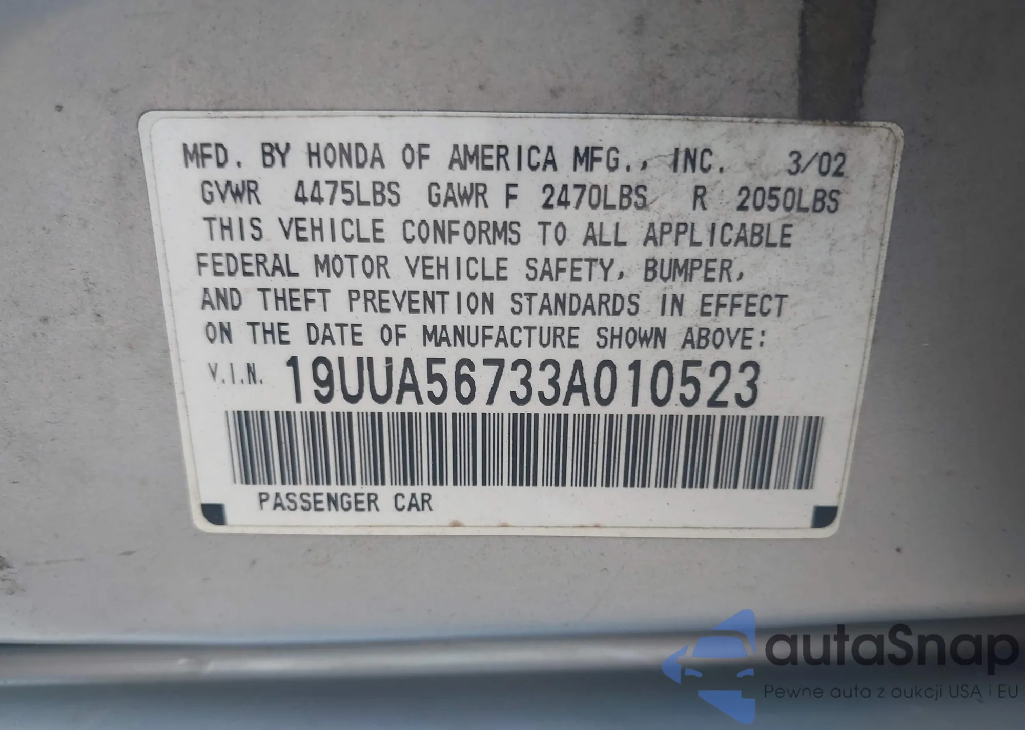 VIN: 19UUA56733A010523
