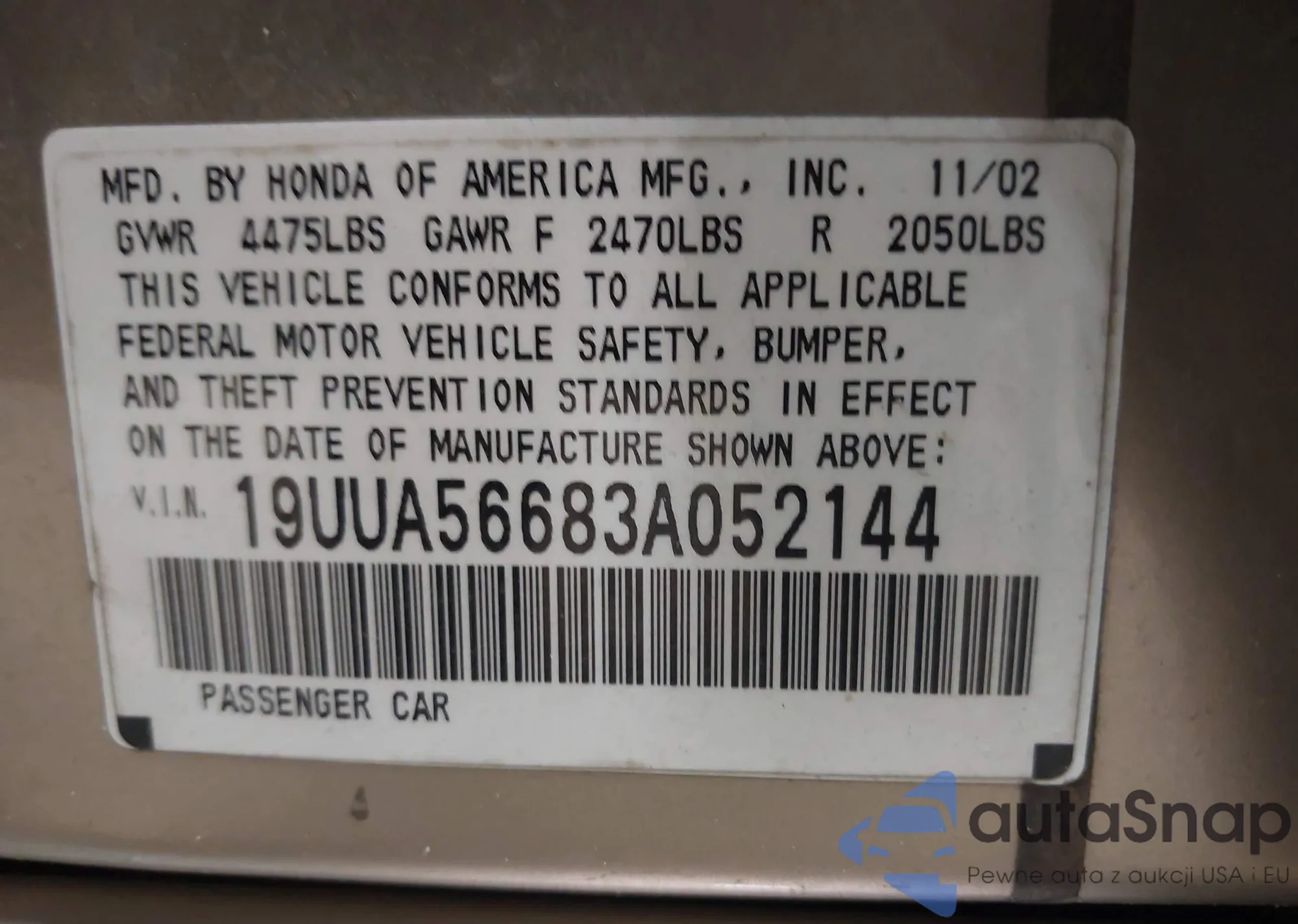 VIN: 19UUA56683A052144