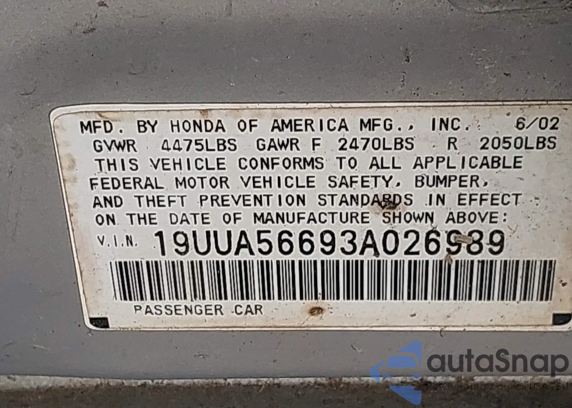 VIN: 19UUA56693A026989