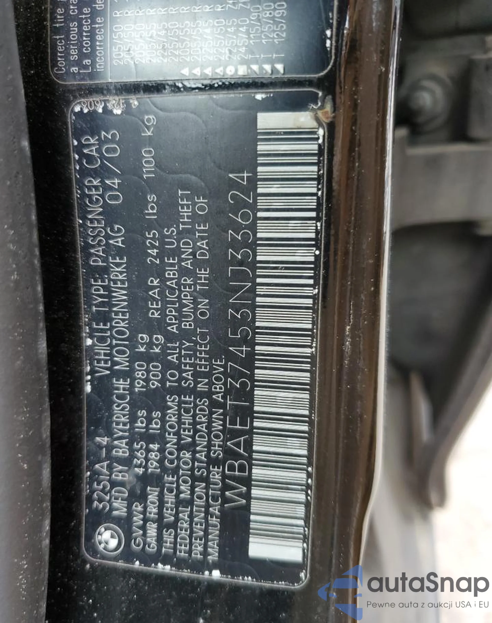 VIN: WBAET37453NJ33624