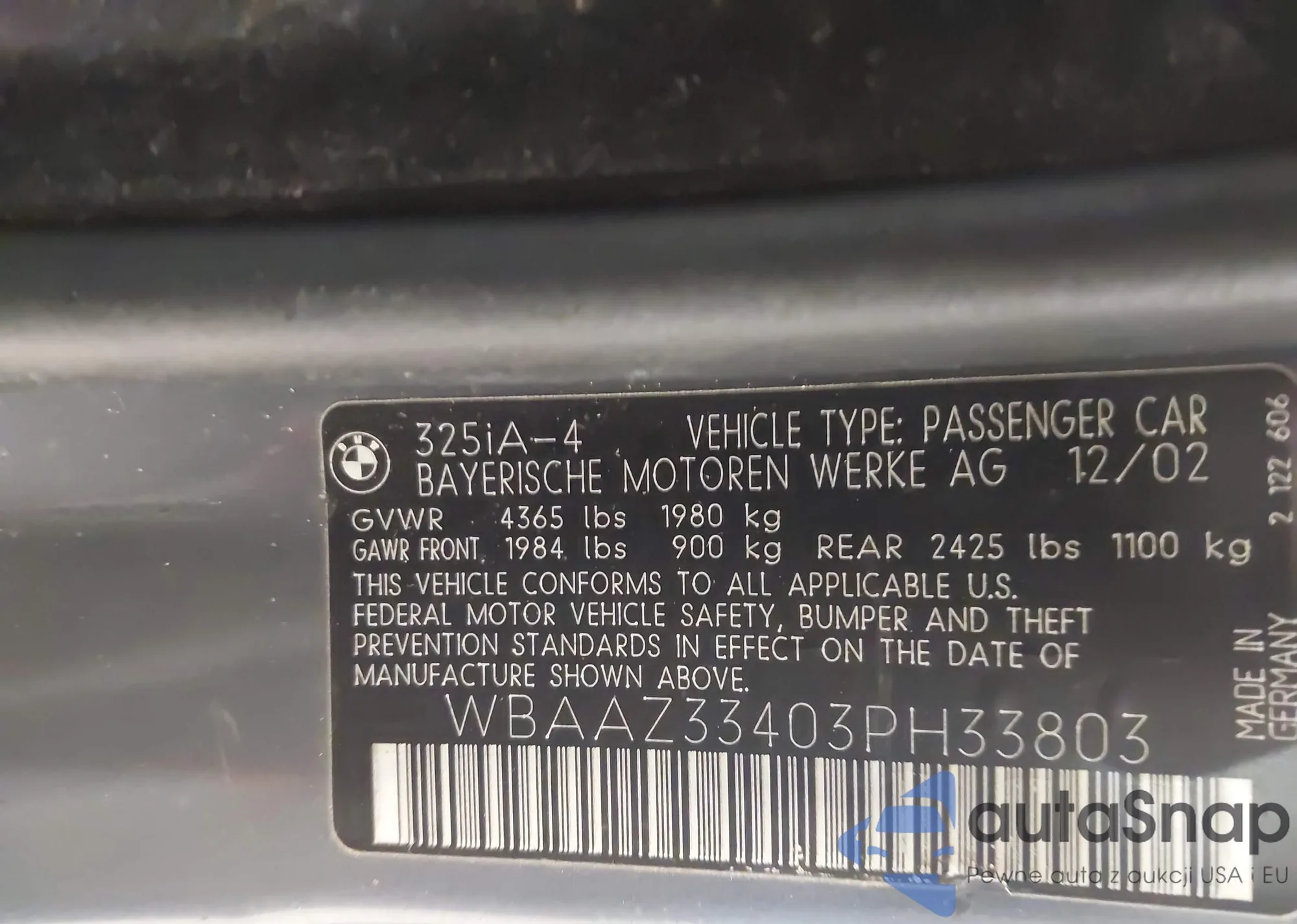 VIN: WBAAZ33403PH33803