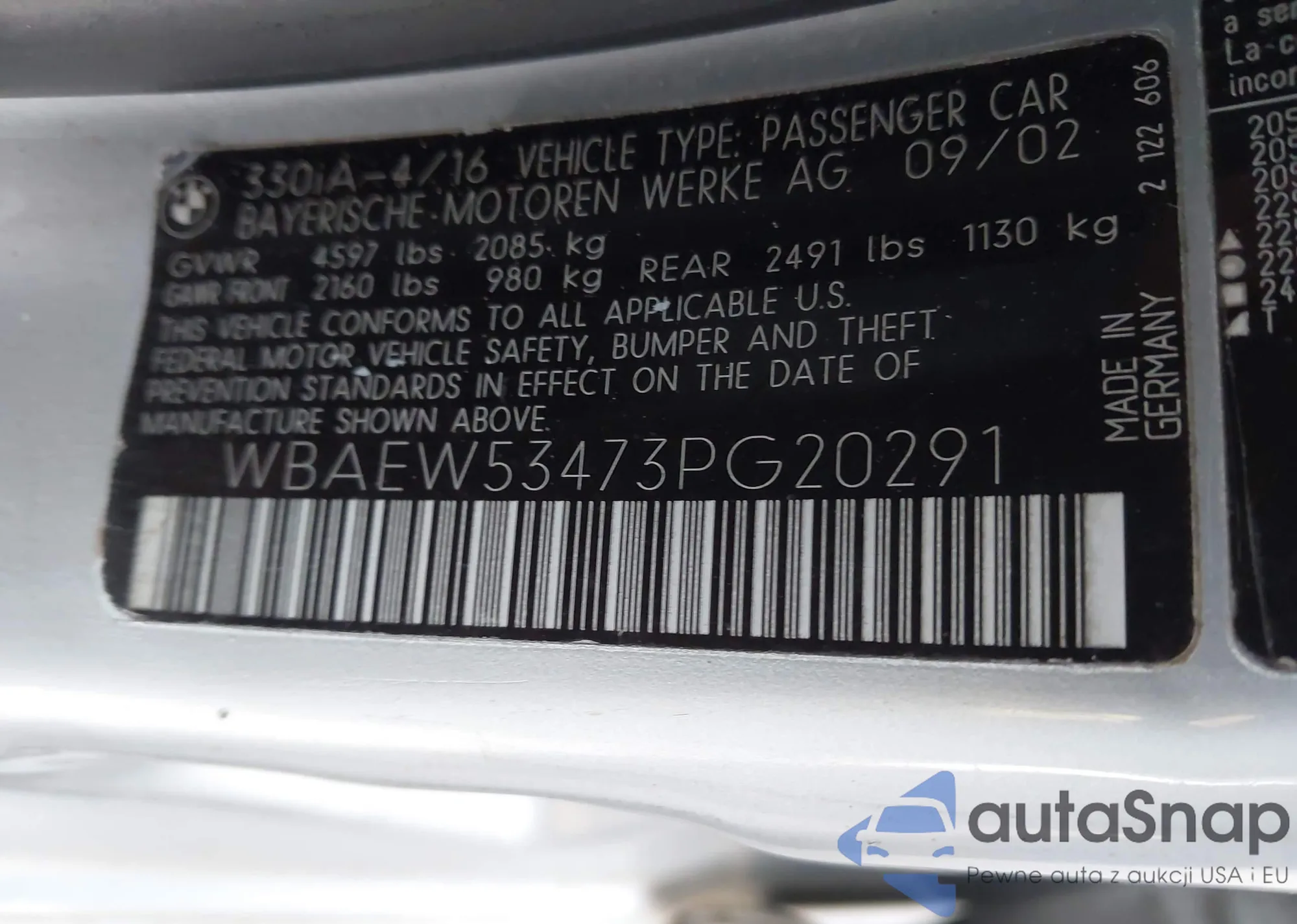 Автомобиль BMW 3er 2003 (VIN WBAEW53473PG20291) ранее не участвовал в торгах. Документы чистые, пробег соответствует или ниже среднего по рынку. Продаётся страховой компанией — рекомендуем покупку. Доставка в порт займет около 6–8 недель.